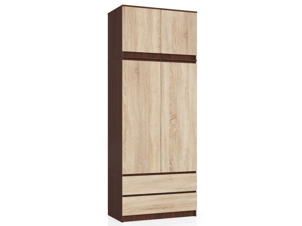 Představujeme vám MILUŠKA90 - nádstavbu, která kombinuje temnou elegance wenge s přírodním teplem dubu Sonoma. Tento harmonický spoj dvou populárních barev přináší do vaší ložnice sofistikovaný a současný vzhled.