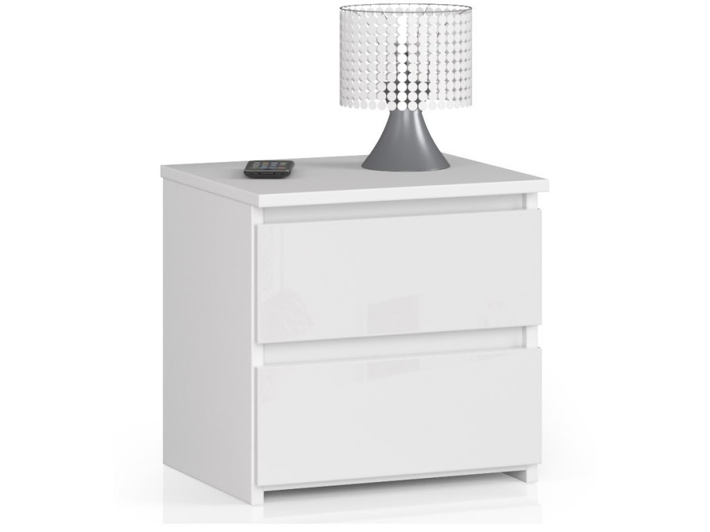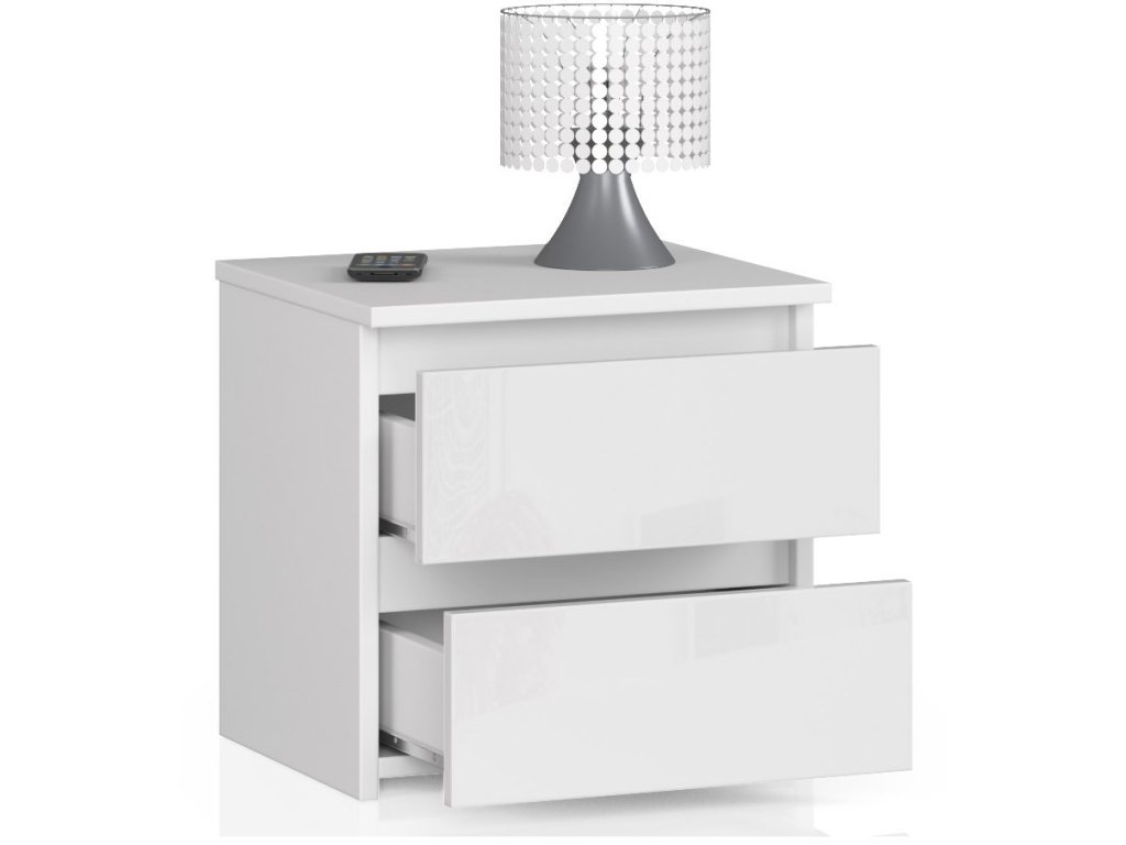 Moderní noční stolek CALIN40, bílý / bílý lesk