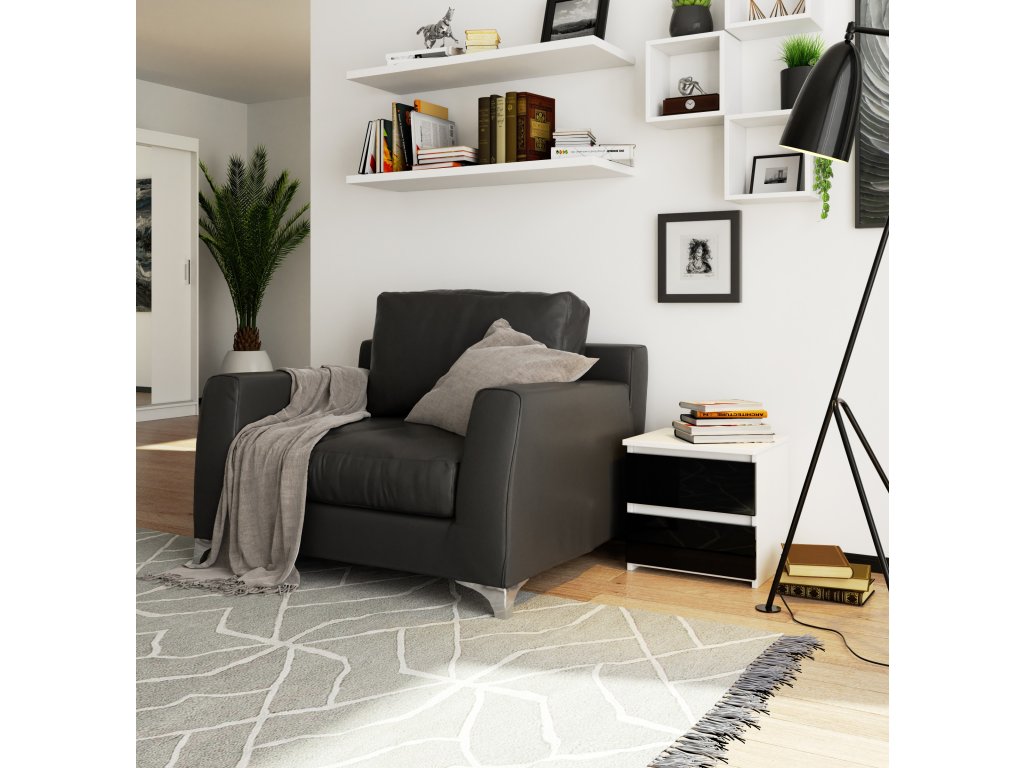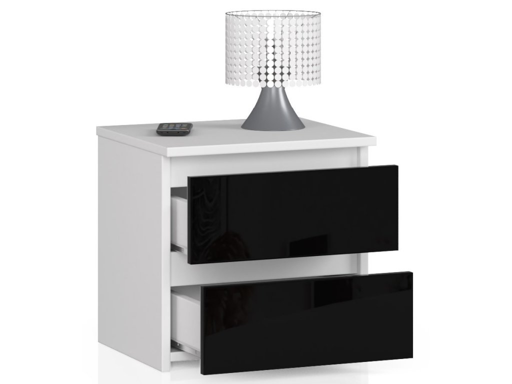 Moderní noční stolek CALIN40, bílý / černý lesk