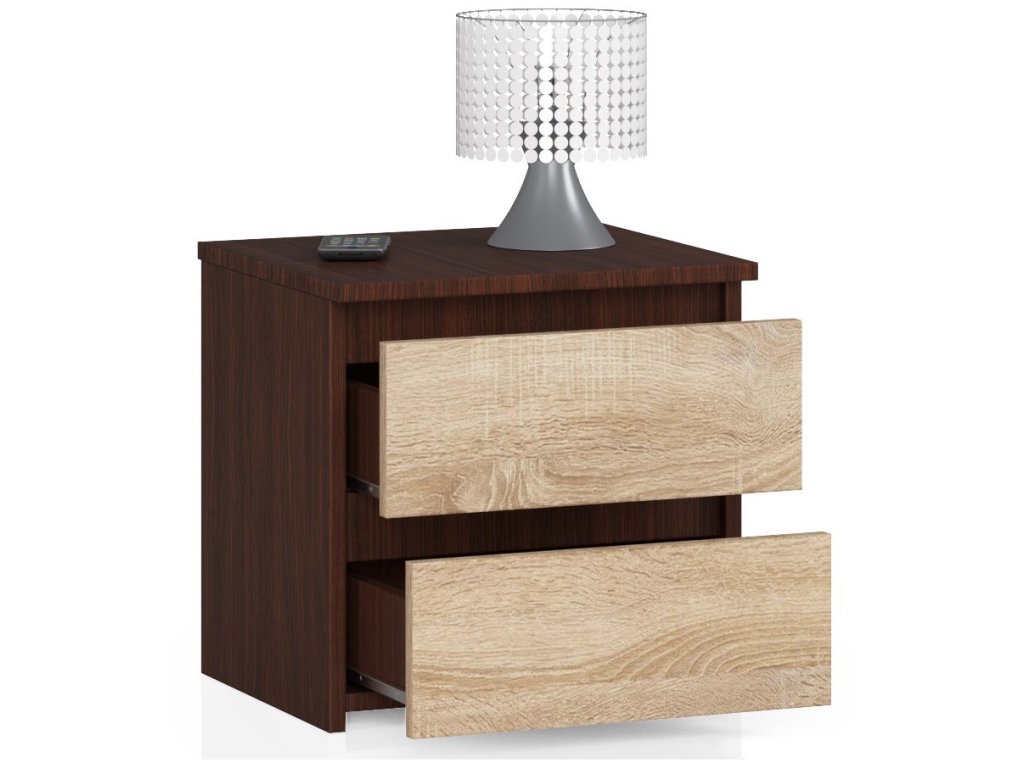 Obohaťte svou ložnici o kousek nábytku, který kombinuje hluboké tóny wenge s jemným a přírodním dubem Sonoma. CALIN40 je noční stolek, který spojuje v sobě nejen funkčnost, ale i výjimečný design.