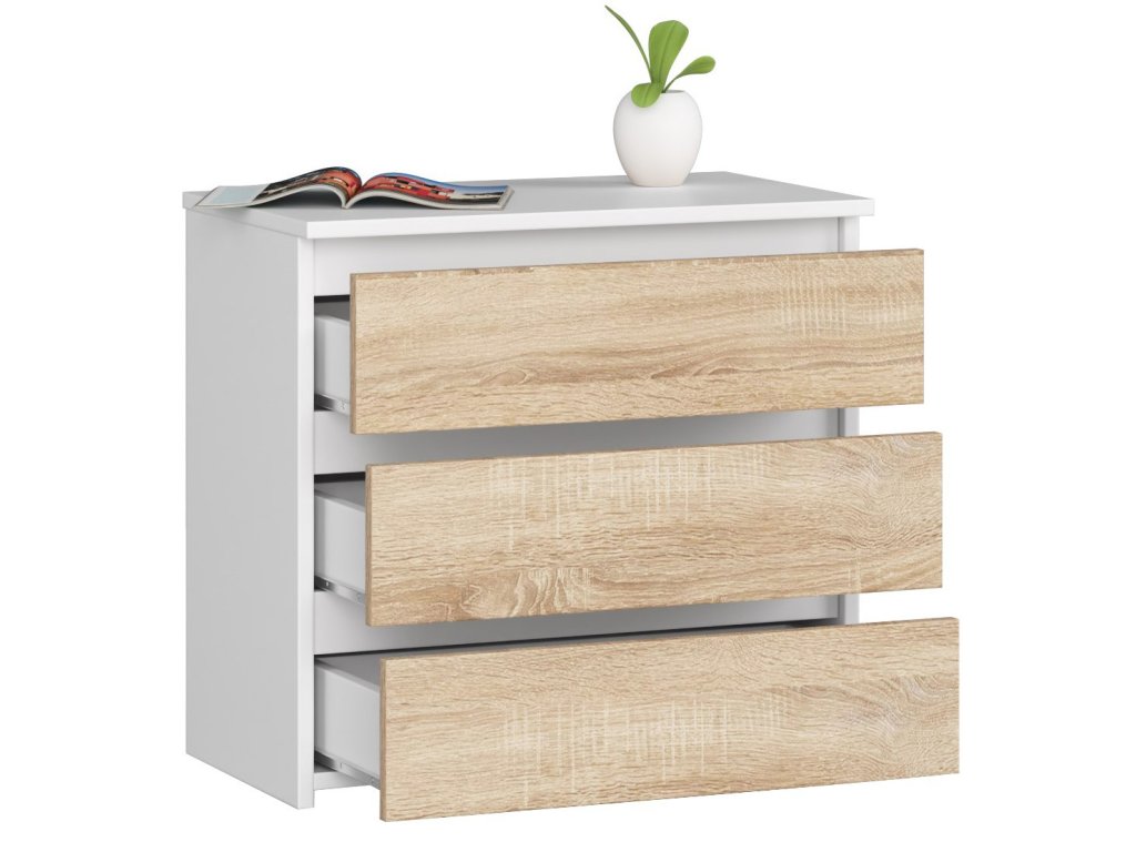 - Barva: Čistá bílá v kombinaci s teplým odstínem dubu Sonoma přináší svěží a příjemnou atmosféru do vašeho prostoru.