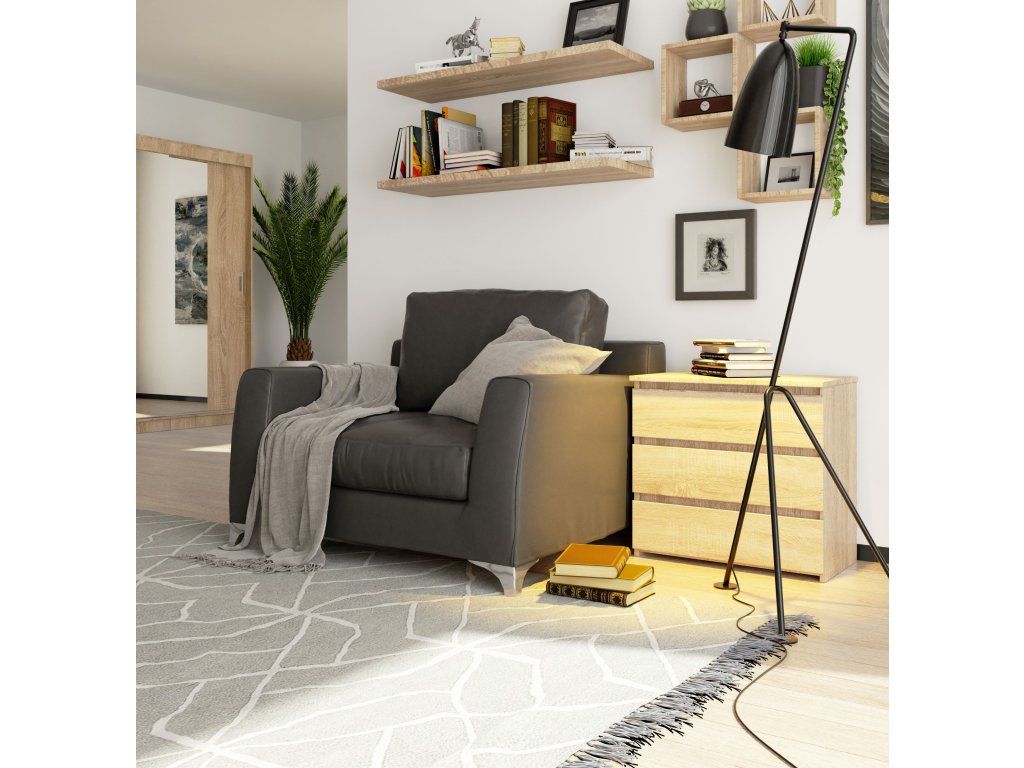 - Barva: Teplý odstín dubu Sonoma dodá vašemu pokoji příjemnou a uklidňující atmosféru.