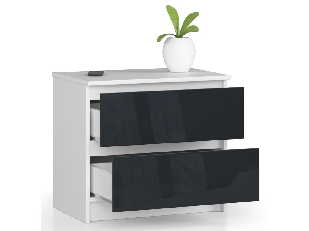 Moderní noční stolek KARIN60, bílý / grafit lesk