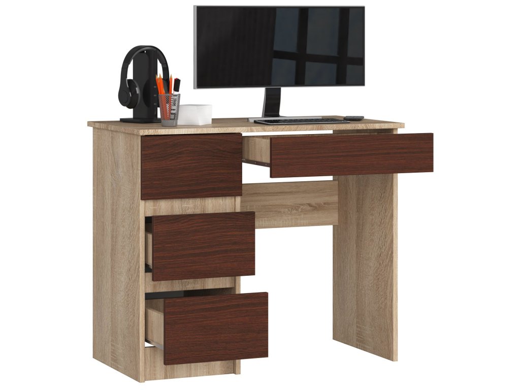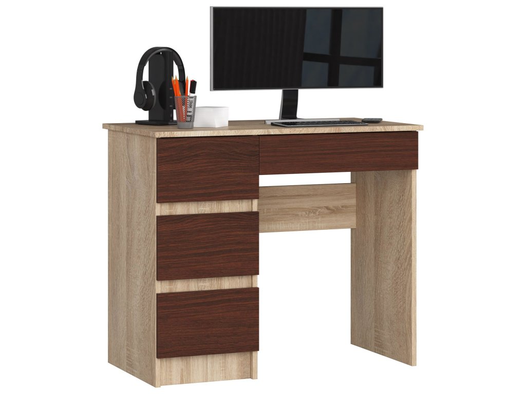 Moderní Psací Stůl ZEUS90L v kombinaci dub Sonoma a wenge