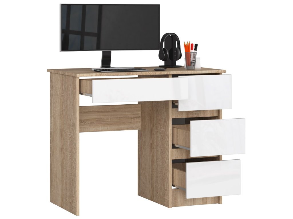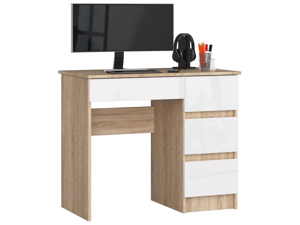 Designový Psací stůl ZEUS90P: Elegance dubu Sonoma a bílého lesku