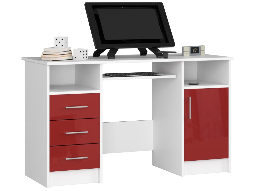 Moderní psací stůl ANNA124, bílý / červený lesk