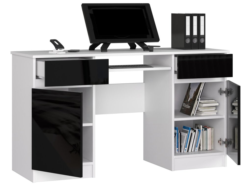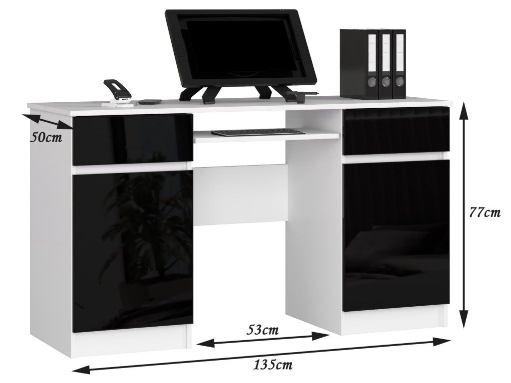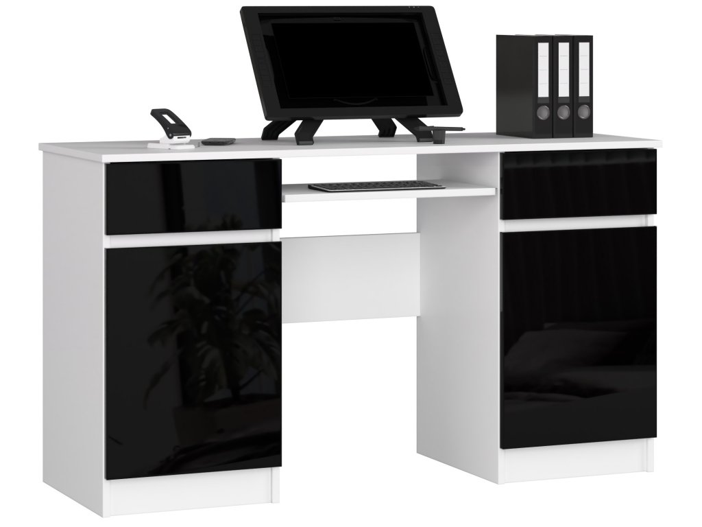 Moderní psací stůl ANNA135, bílý / černý lesk