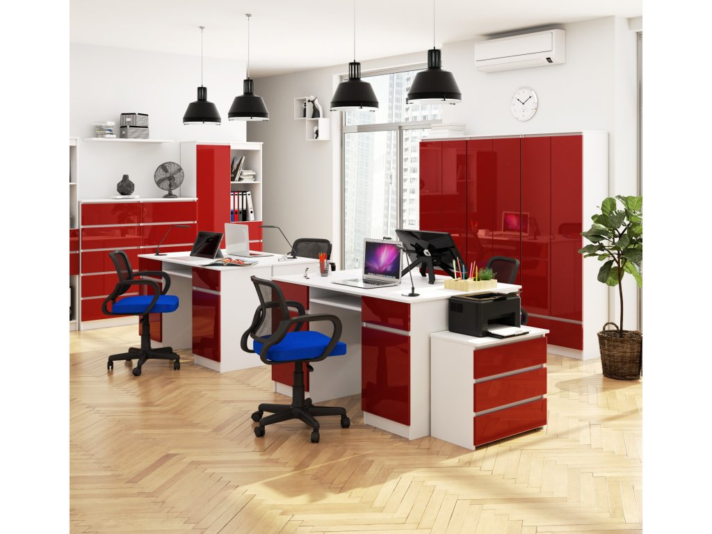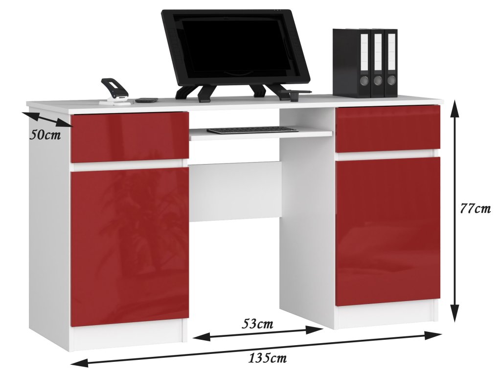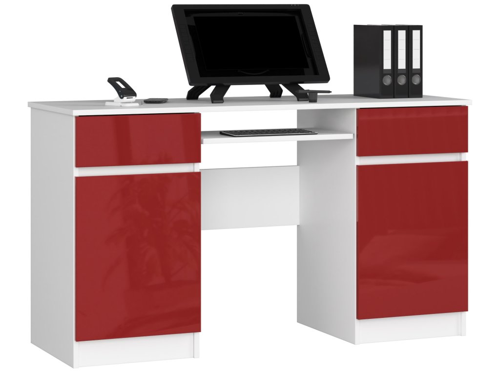 Moderní psací stůl ANNA135, bílý / červený lesk