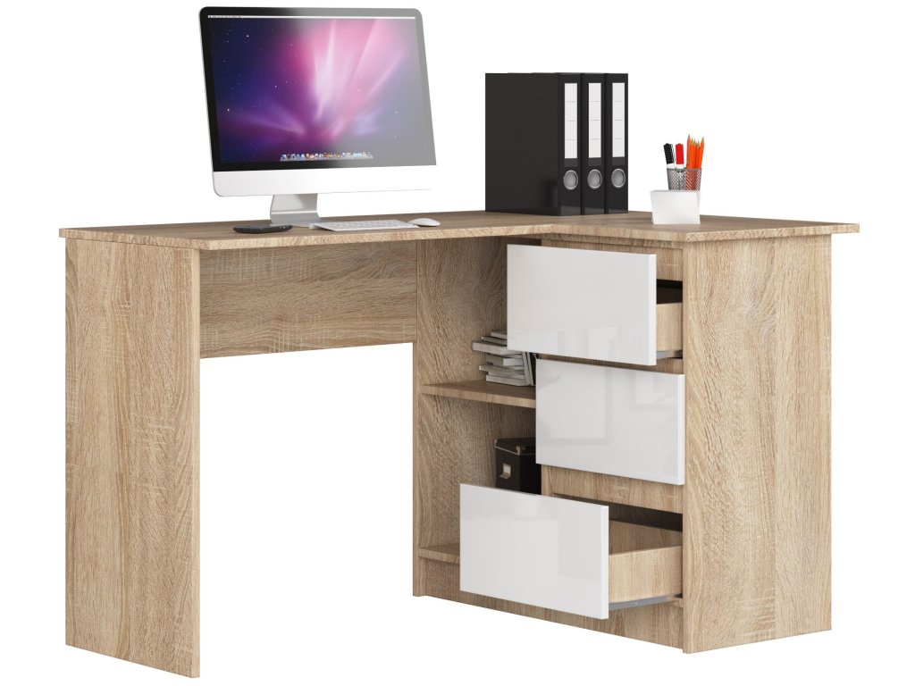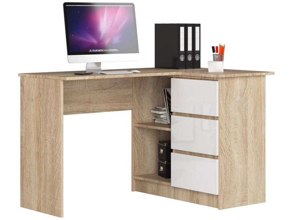 HERRA124P: Elegantní rohový psací stůl s kombinací dubu Sonoma a bílého lesku!