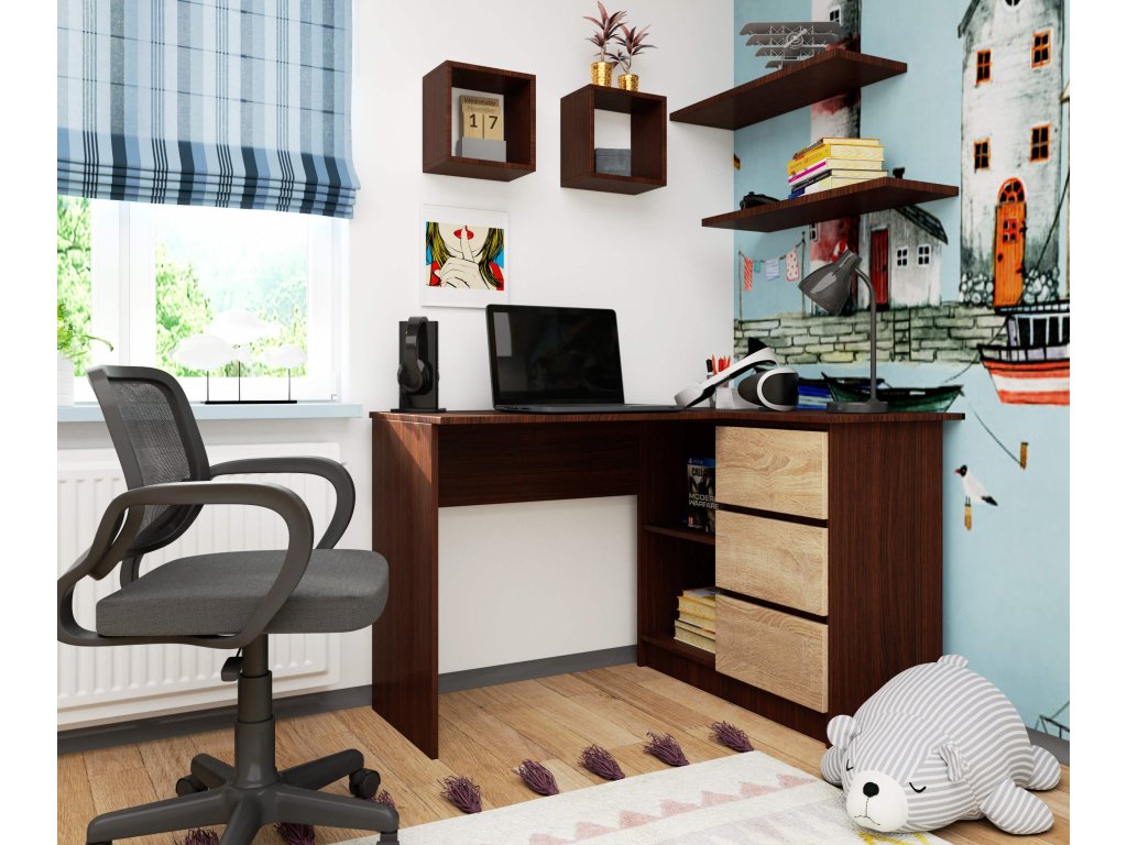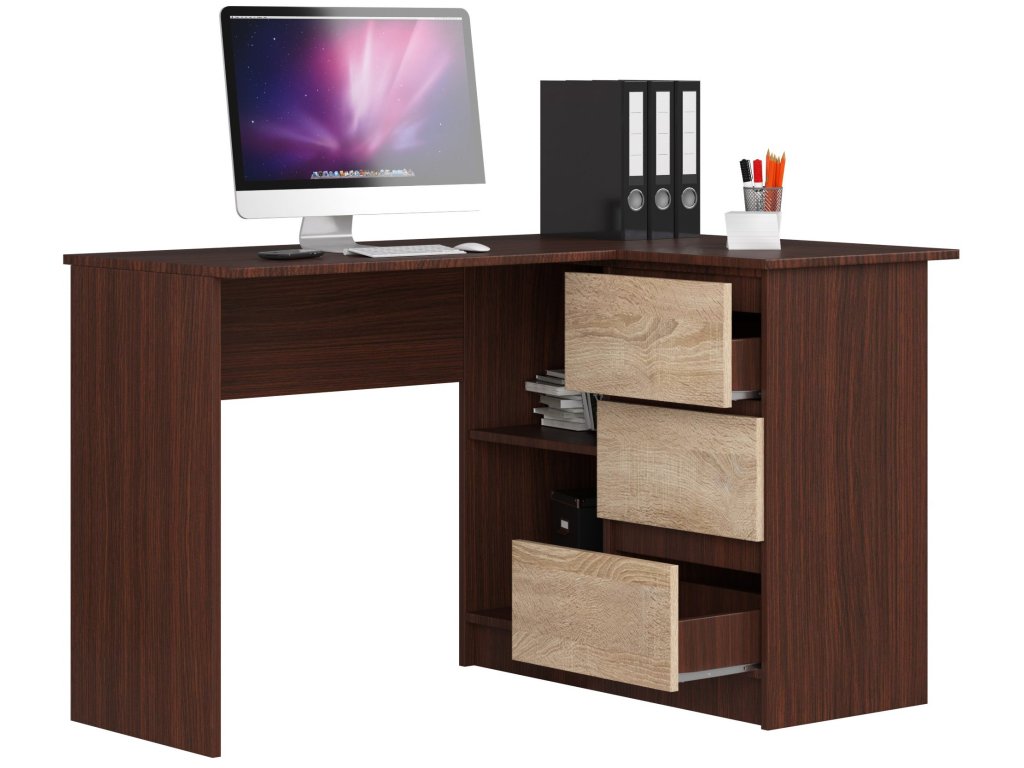 HERRA124P: Elegantní rohový psací stůl v kombinaci wenge a dub Sonoma!