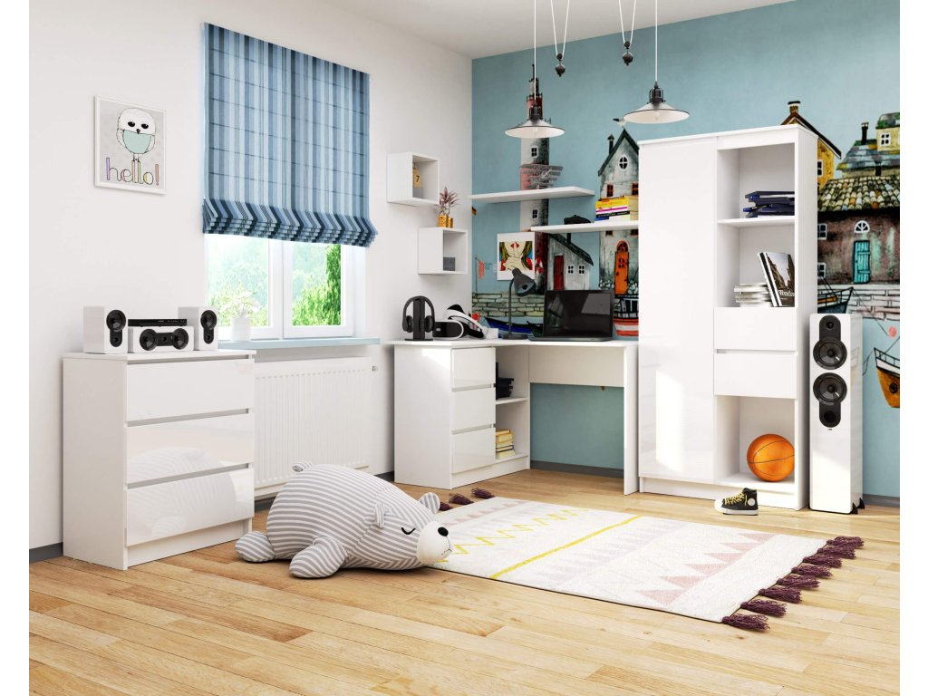 Chcete moderní stůl, který bude obohatením pro dětský pokoj, kancelář nebo pracovnu? HERRA124L je psací stůl, který spojuje design s praktičností. Jeho bílá barva doplněná lesklým dekorem přidává na eleganci a moderním vzhledu.