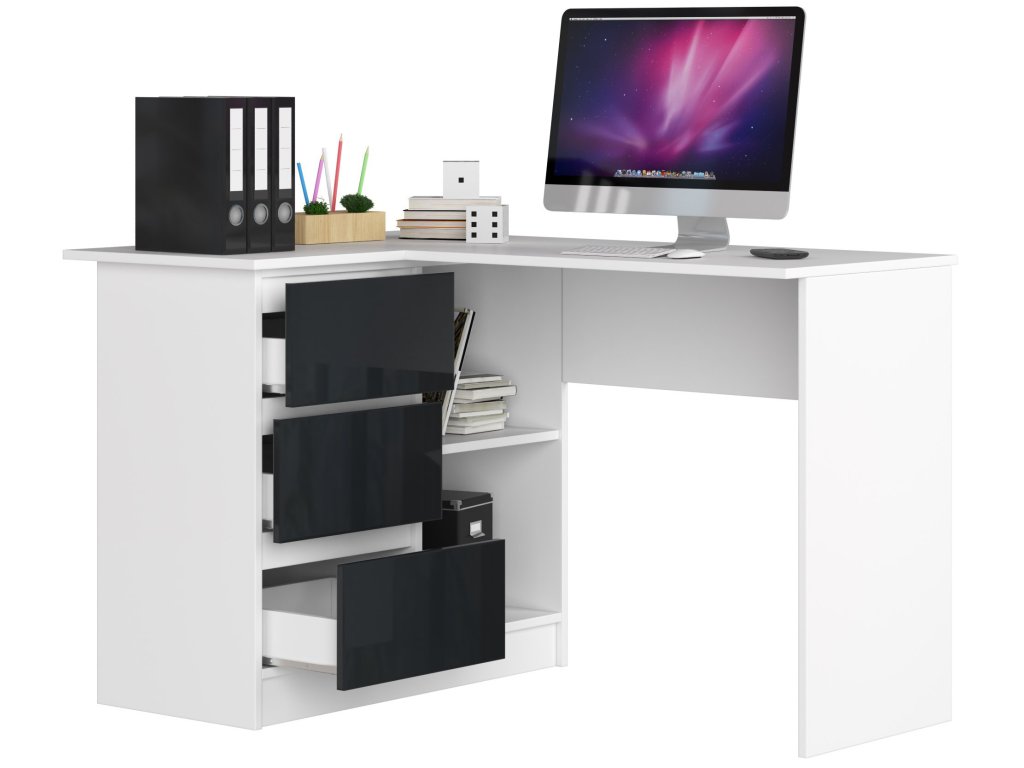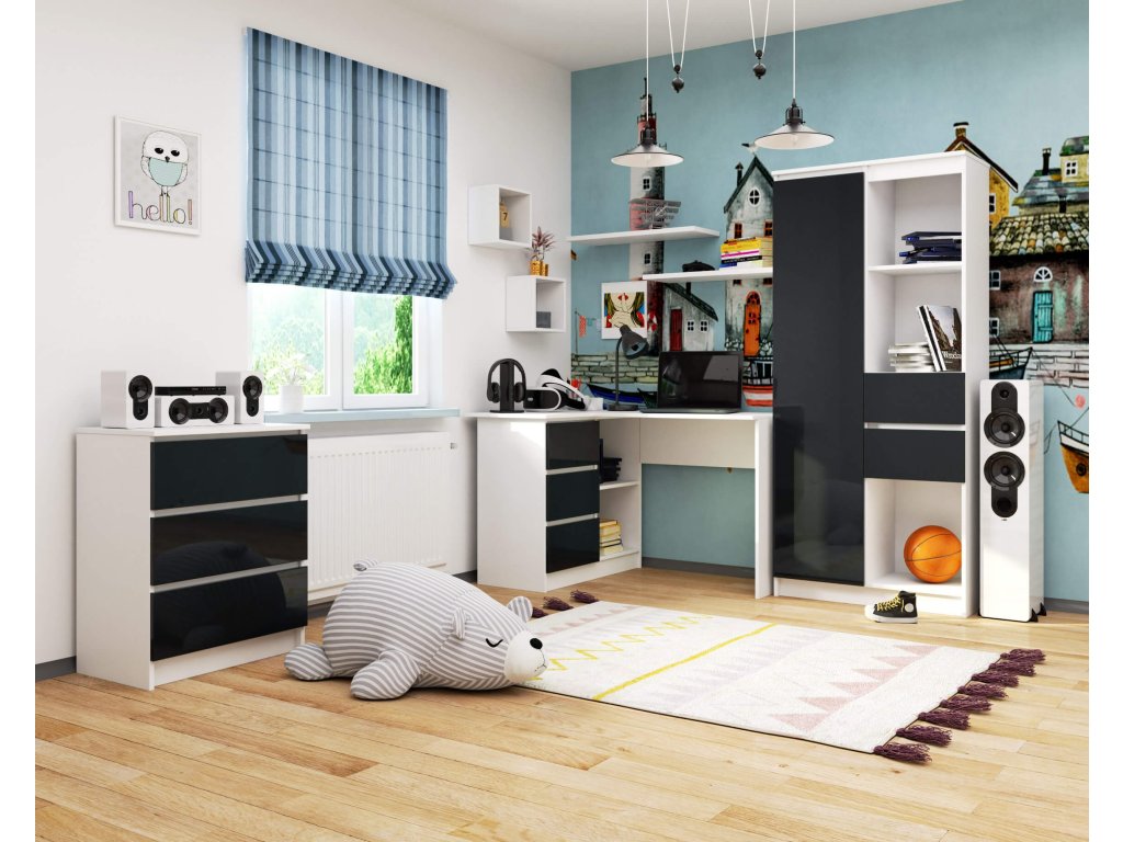 HERRA124L představuje moderně designový rohový psací stůl, který je ideálním doplňkem jak pro dětský pokoj, tak pro kancelář či pracovnu. Svou kombinací bílé barvy a grafitového lesklého dekoru přináší stolu nejen eleganci, ale také jedinečný a sofistikovaný vzhled.