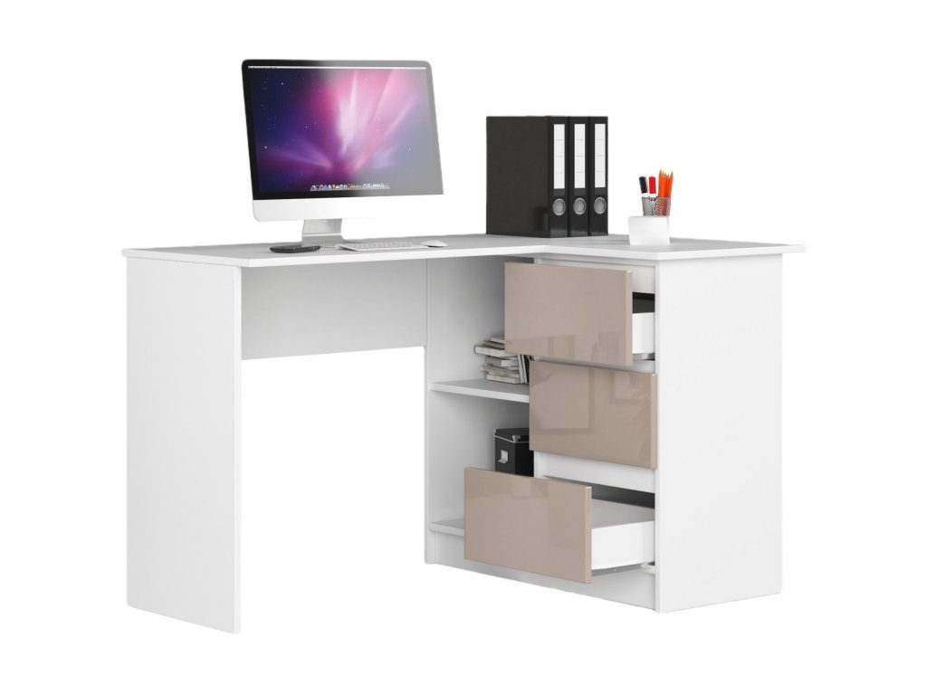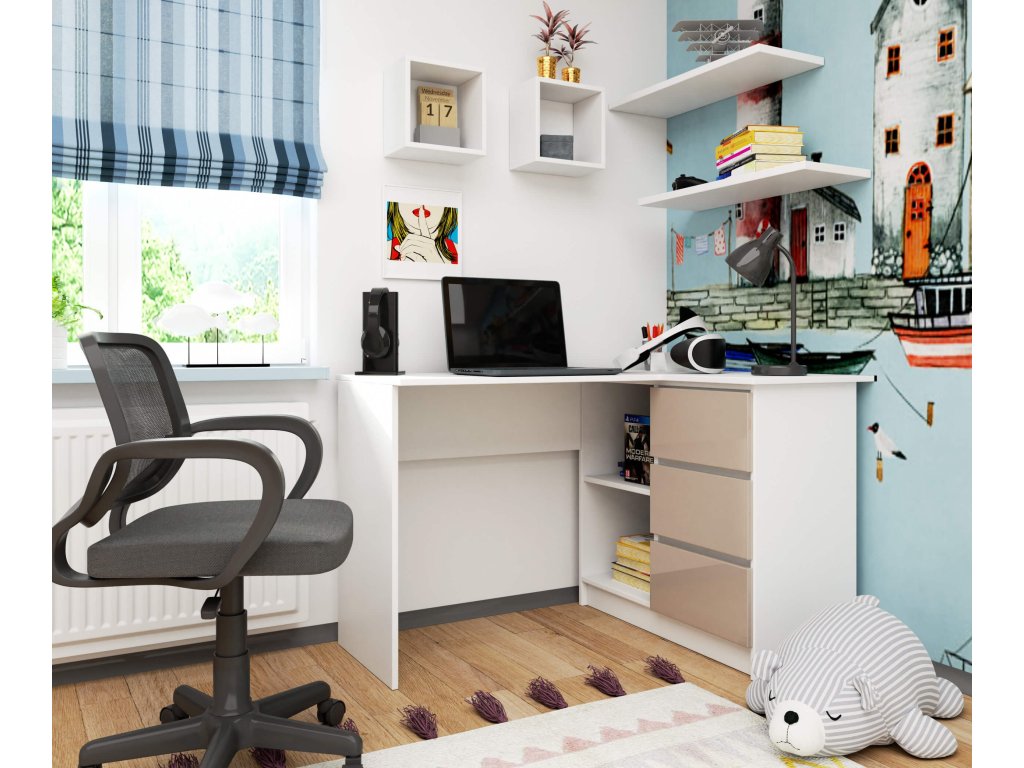 Psací stůl HERRA124P: Moderní elegance v bílém a capuccino lesku
