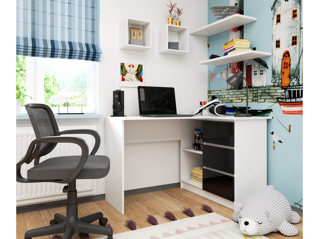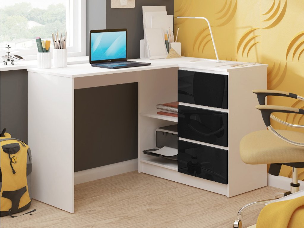 Odhalte kouzlo kombinace bílé barvy a černého lesku s tímto moderním psacím stolem, ideálním pro dětský pokoj, kancelář nebo pracovnu. S jeho unikátním designem a vysokou praktičností se stane středobodem vašeho prostoru.