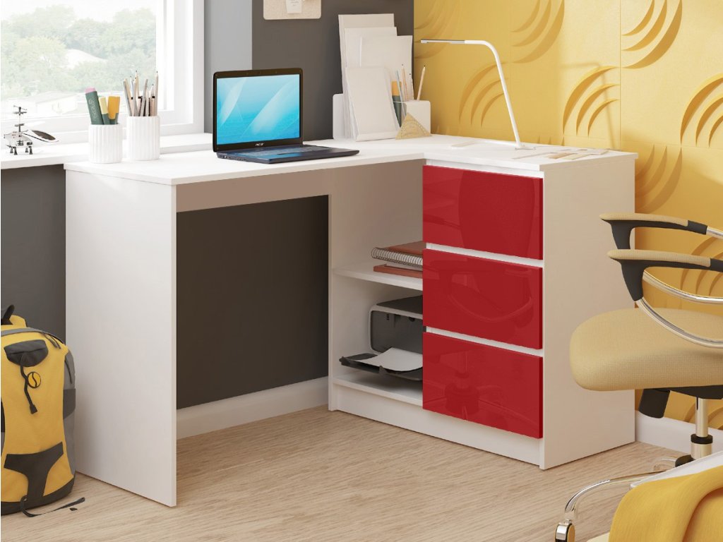 Obohaťte svůj interiér o moderní design s tímto unikátním psacím stolem, ideálním pro dětský pokoj, kancelář nebo pracovnu. Elegantní kombinace bílé a červeného lesku přidává tento nábytek mezi nezbytné kousky pro každý moderně zařízený prostor.