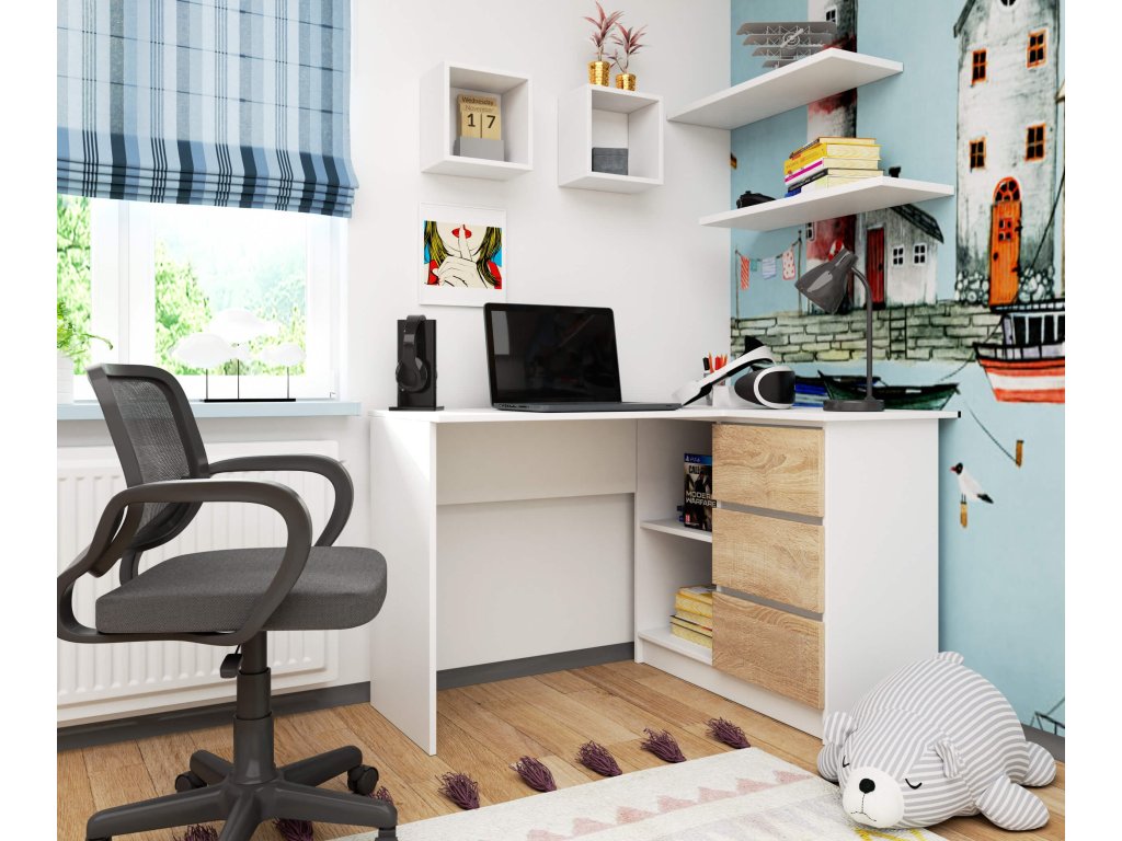 Potřebujete stůl, který spojuje moderní design s přírodními tóny? Psací stůl HERRA124P v kombinaci bílé barvy a dubu Sonoma přináší čerstvou a zároveň elegantní atmosféru do každého prostoru. Ideální pro dětský pokoj, kancelář či pracovnu.