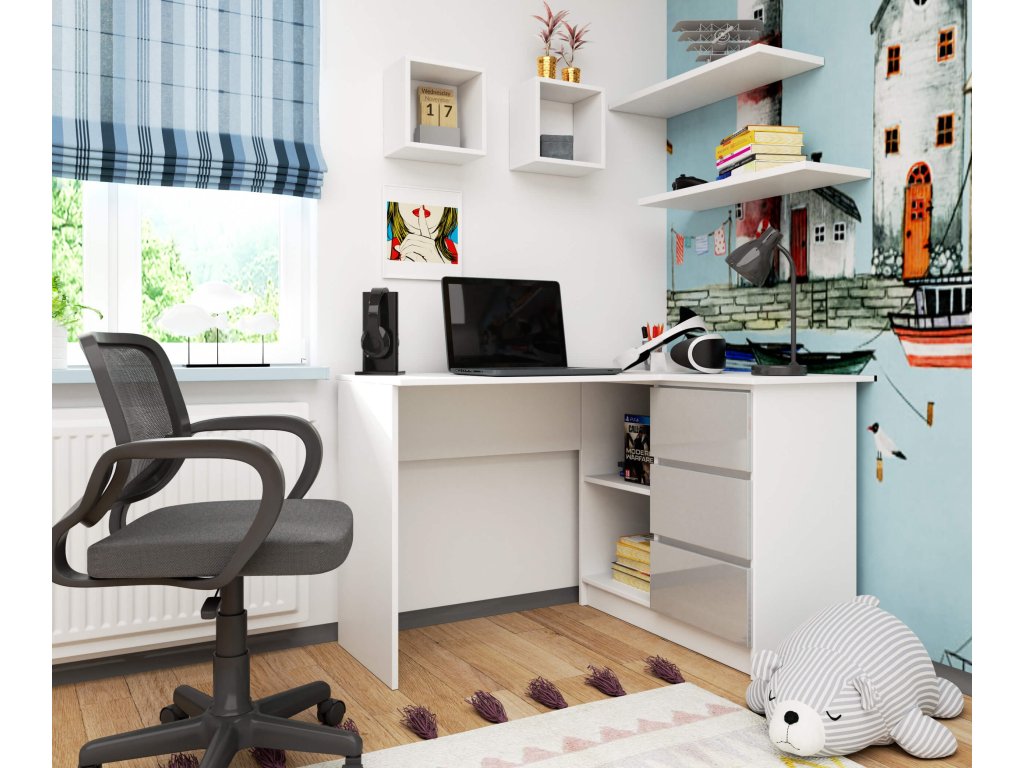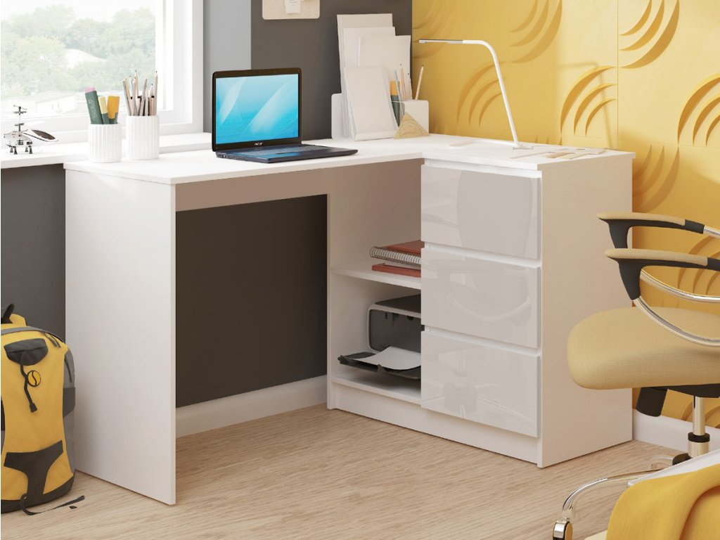 Nechejte se okouzlit kombinací bílé barvy a metalického lesku s tímto moderním psacím stolem. HERRA124P je dokonalým doplňkem pro dětský pokoj, kancelář i pracovnu, který spojuje funkčnost s elegantním designem.