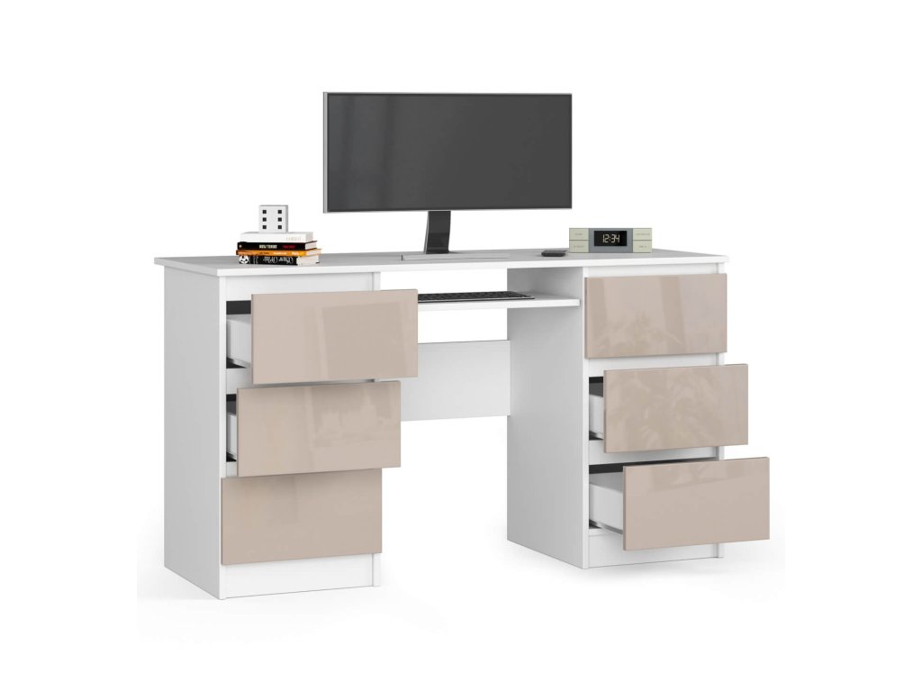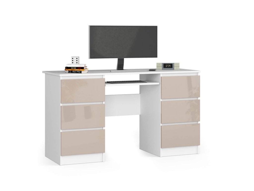 Moderní psací stůl JIŘÍ135, bílá / cappuccino lesk