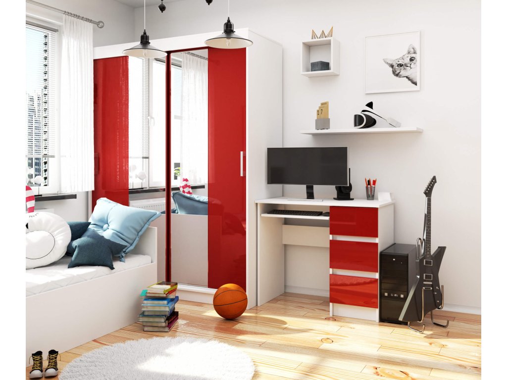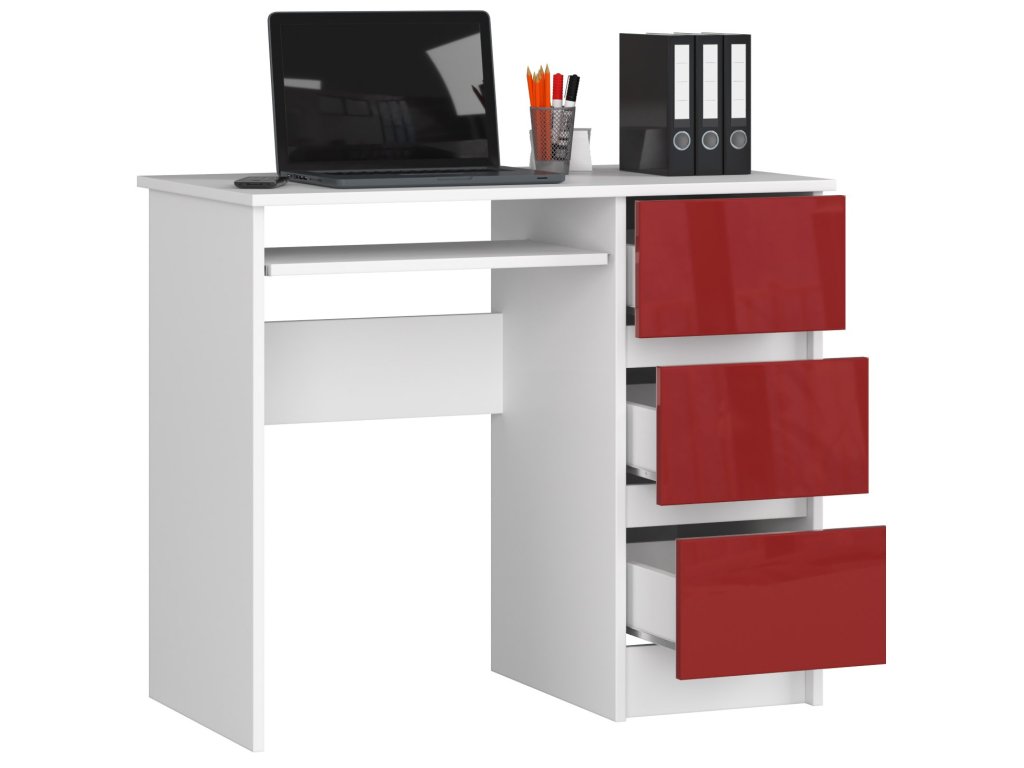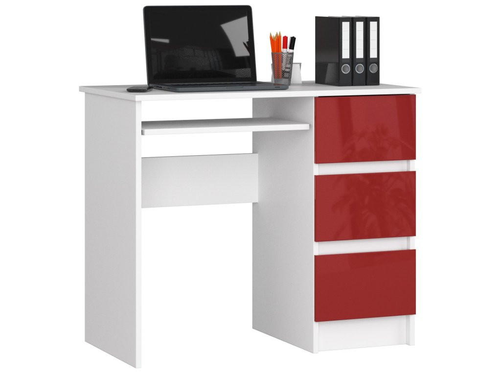 Moderní Psací Stůl JIŘÍ90P: Bílá kombinovaná s červeným leskem