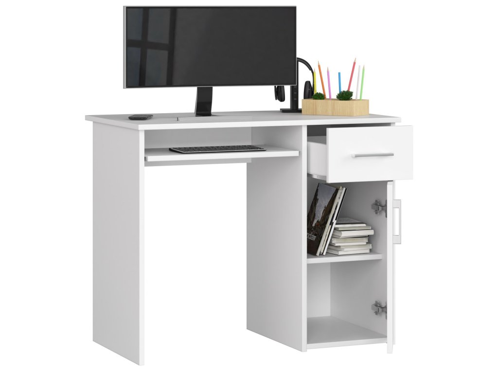 - Vybavení: 1 zásuvka pro snadné skladování a výsuvná deska na klávesnici pro komfort při práci.