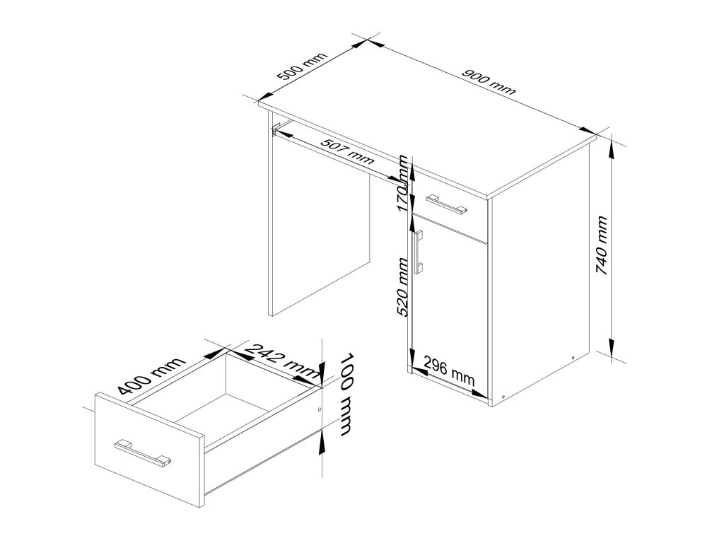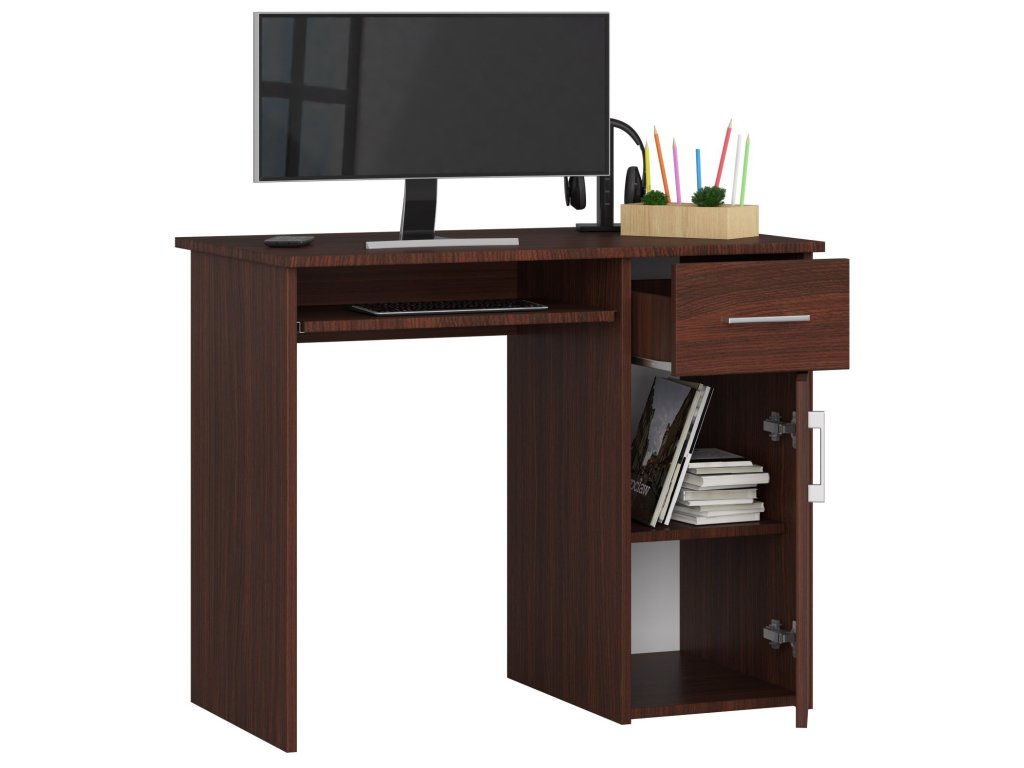 - Vybavení: S jednou zásuvkou a výsuvnou deskou na klávesnici pro maximální komfort při práci.