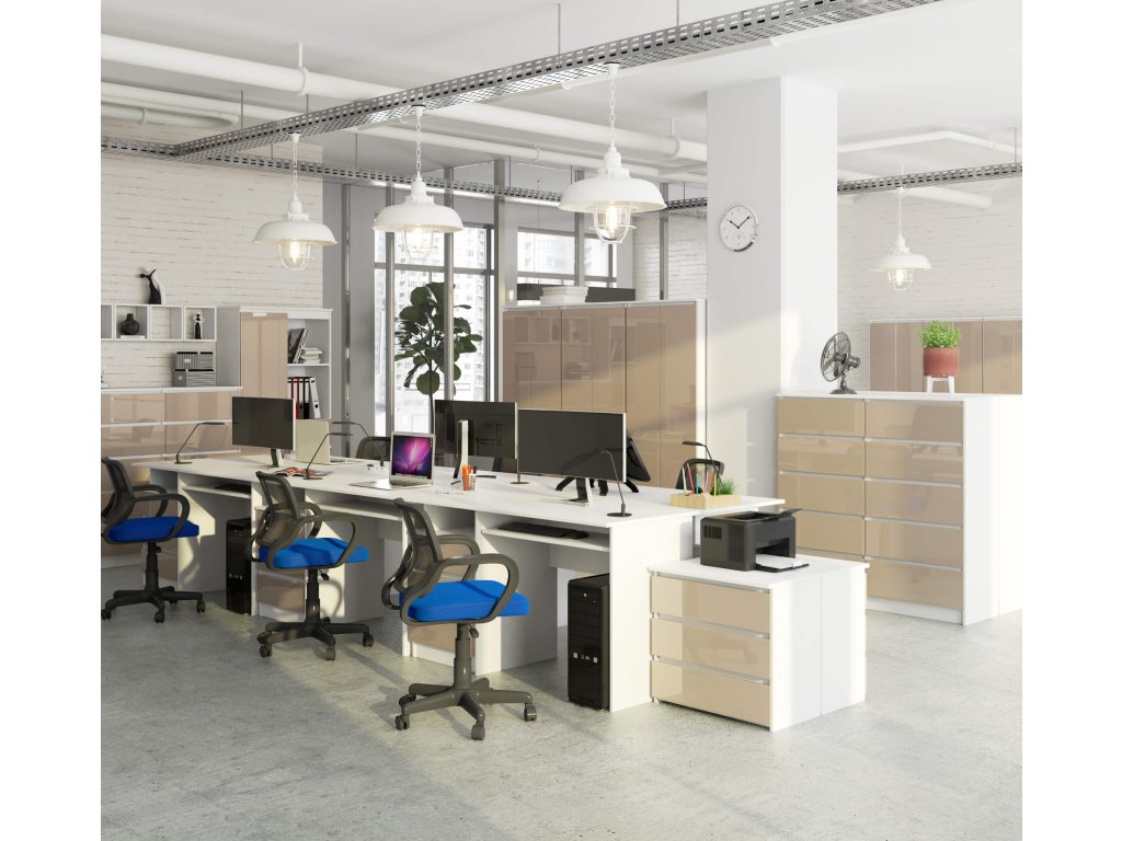 Designový Psací stůl PEPA135: Luxusní kombinace bílé a capuccino lesku