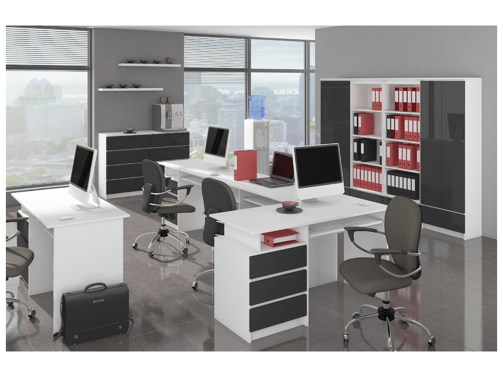 PEPA135: Moderní Psací stůl s kombinací bílé a grafitové lesklé povrchové úpravy