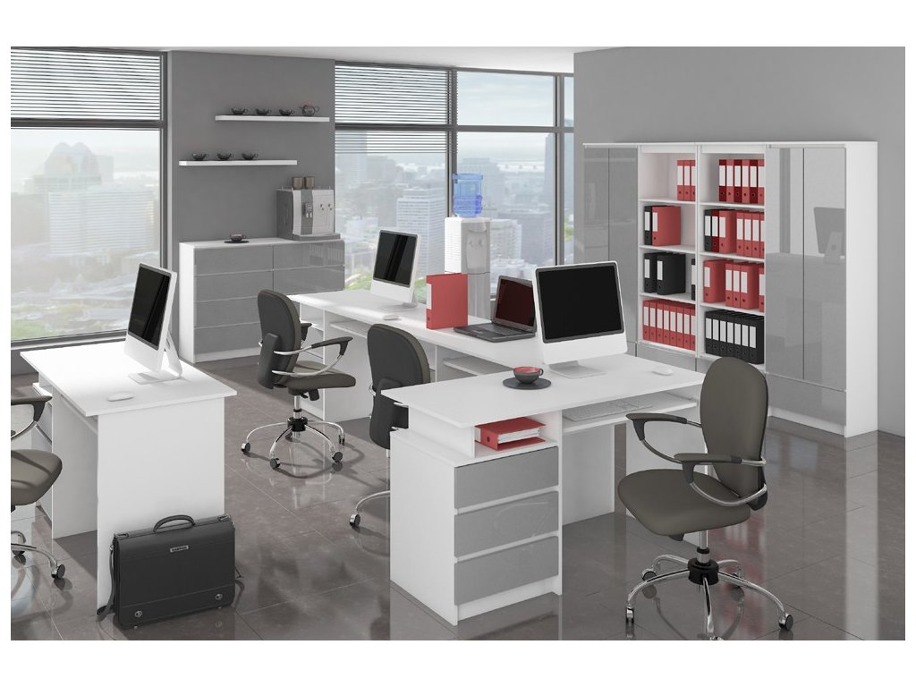 PEPA135: Designový Psací stůl v kombinaci bílé a šedé lesklé barvy