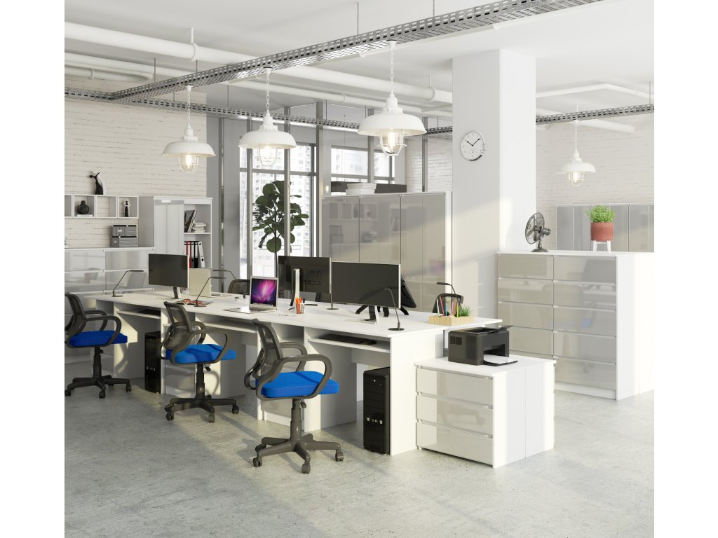 Uveďte svůj pracovní prostor do nového století s PEPA135 - moderním psacím stolem, navrženým pro dětský pokoj, kancelář či pracovnu. S jeho elegantní kombinací čisté bílé a rafinované šedé lesklé barvy zaujme tento stůl své místo v každém interiéru.