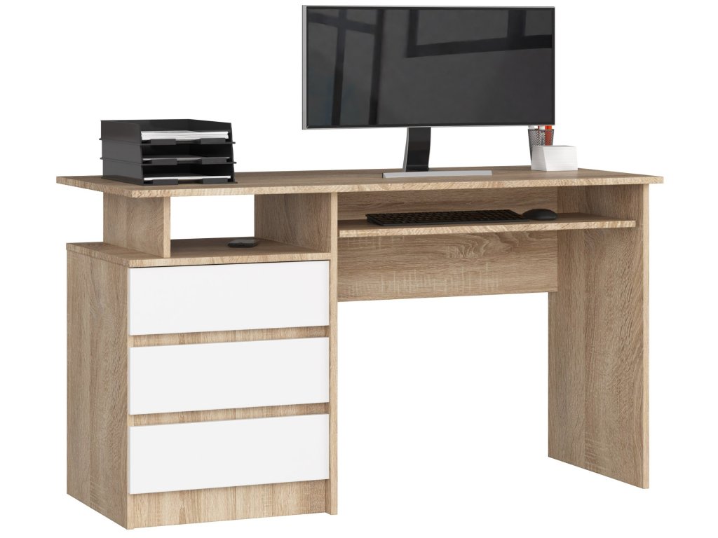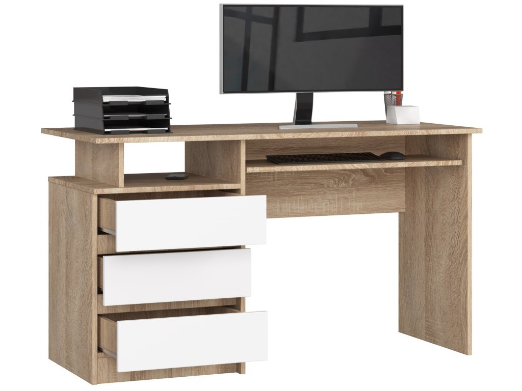PEPA135 - psací stůl, který kombinuje tradiční dub Sonoma s čistým moderním designem bílé barvy. Představuje ideální řešení pro ty, kteří hledají kvalitu, funkčnost a design v jednom.