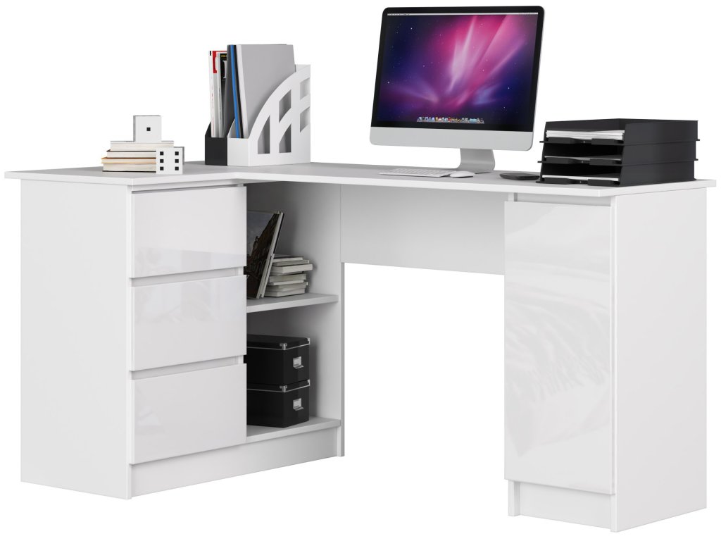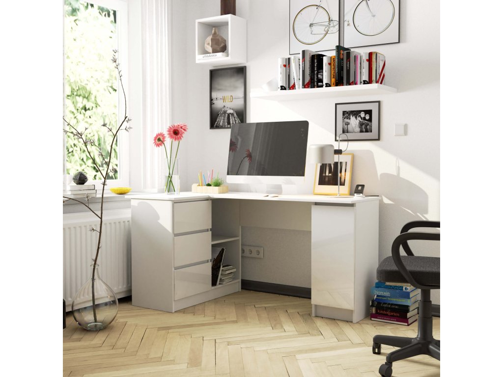 Moderní psací stůl SCYL155L, bílý / bílý lesk