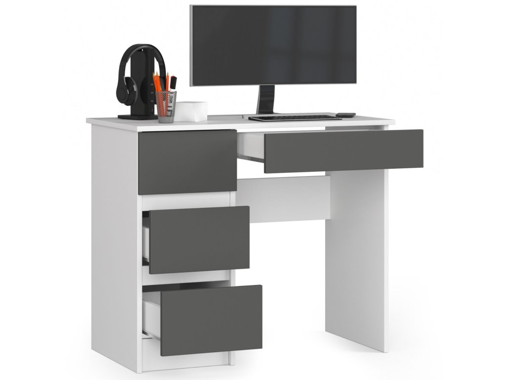 Moderní Psací Stůl ZEUS90L: Elegance bílé spojená s grafitem