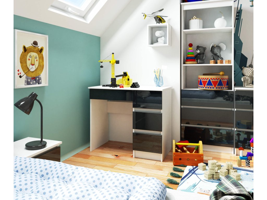 Hledáte stůl, který by byl dokonalým doplňkem jak do dětského pokoje, tak do kanceláře či pracovny? Potom by vás mohl oslovit model ZEUS90P s jeho sofistikovaným designem a kombinací bílé barvy s grafitovým leštěným povrchem.