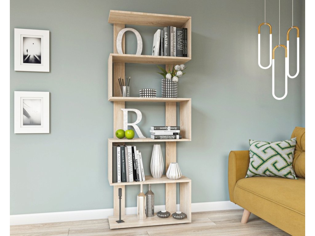 Moderní designový regál REGGI 2 ozvláštní a oživí každý interiér. Regál nabízí bohatý odkládací prostor, které Vám poslouží pro uložení květin, knih, dárkových či vzpomínkových předmětů. Barevné provedení je svěží dub mléčný.