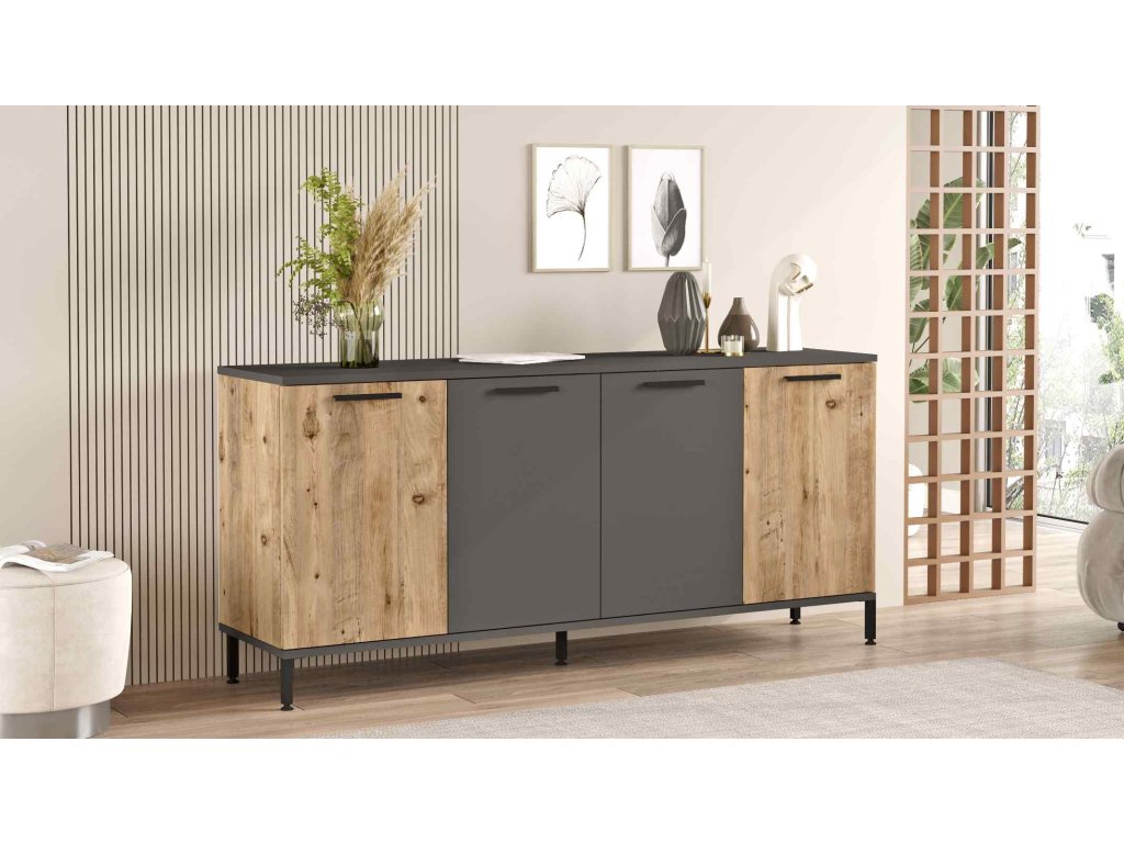 Moderní robustní komoda RELLY 4, barva borovice/antracit