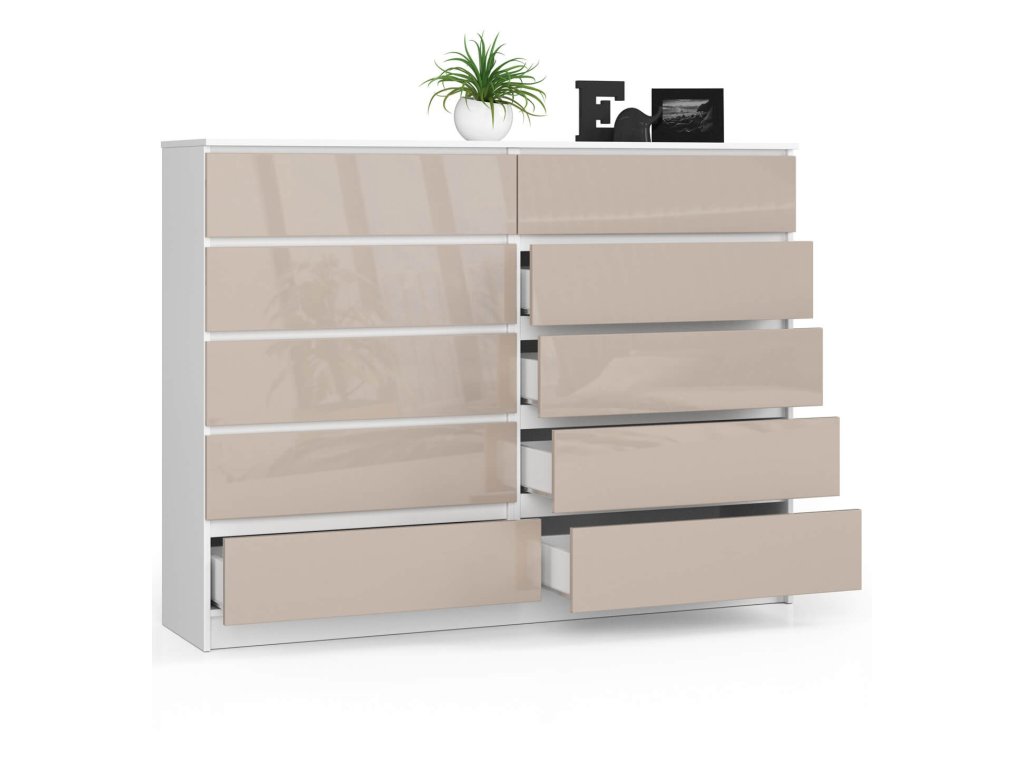 Moderní široká a vysoká komoda, FREEZ160, bílá / capuccino lesk