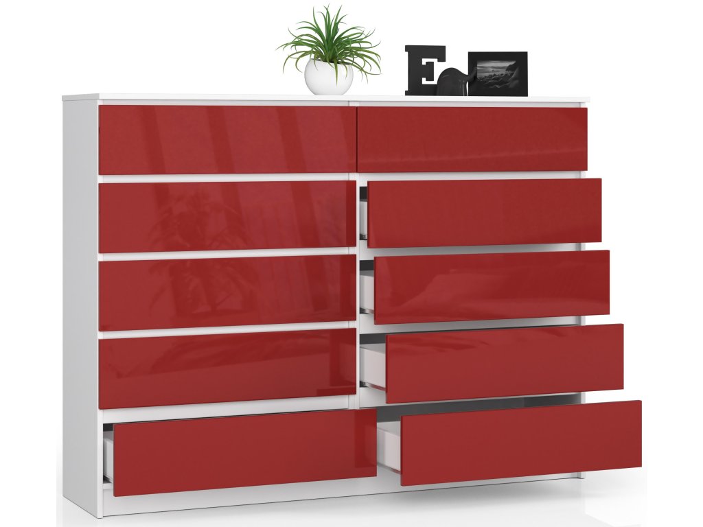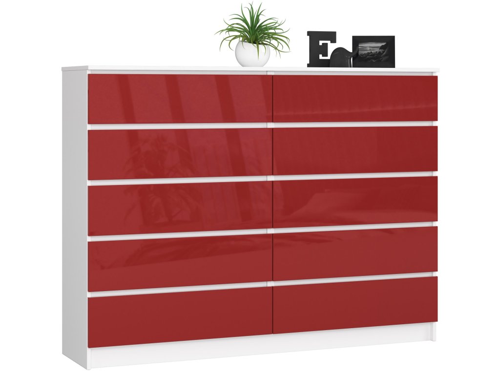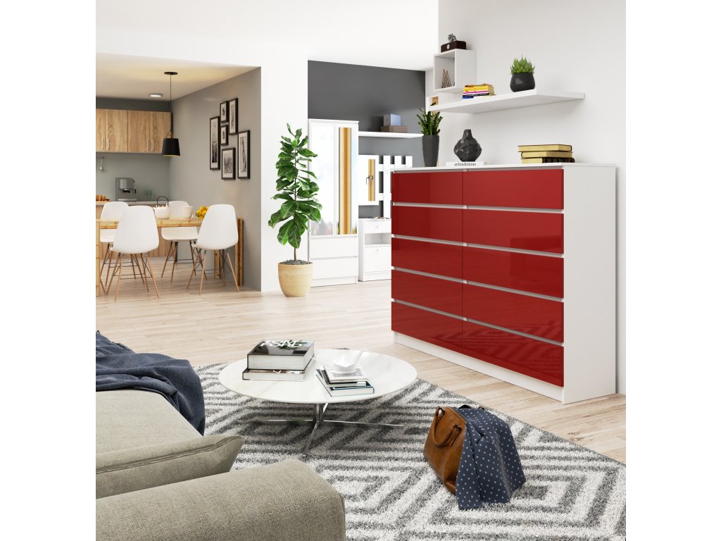 Moderní, široká a vysoká komoda, FREEZ160, bílá / červený lesk