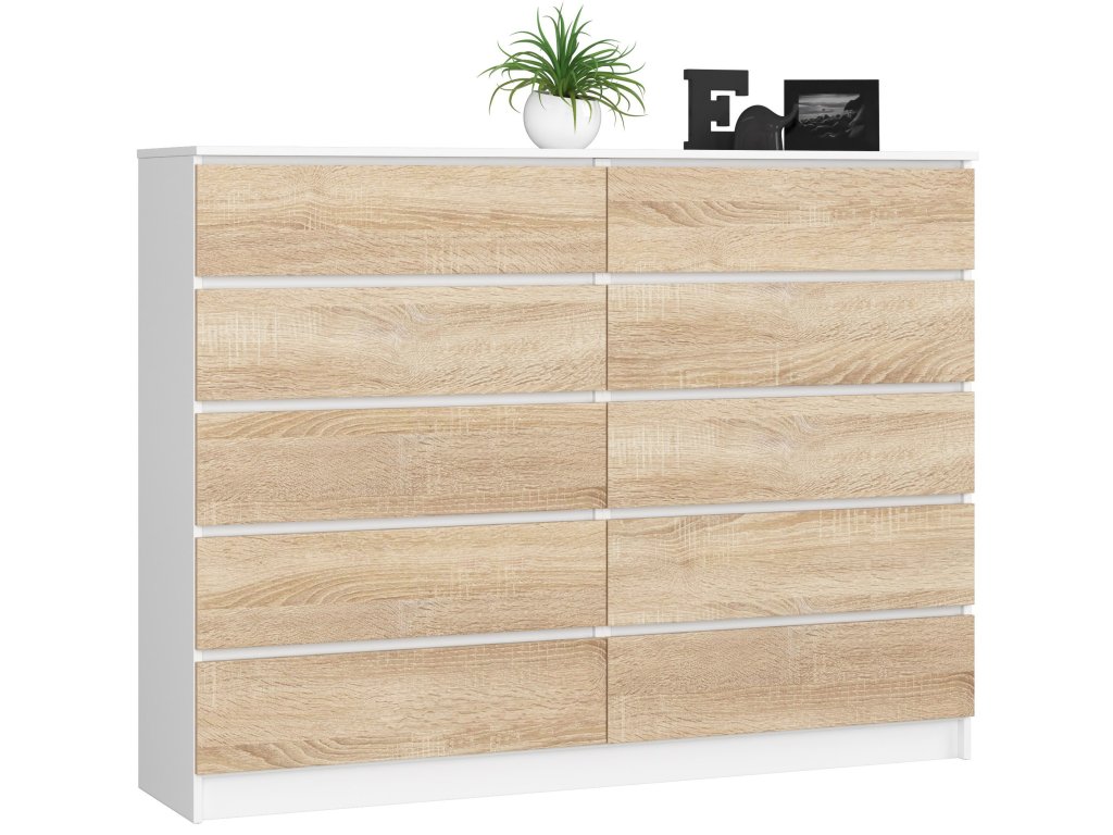 Zkombinujte funkčnost a stylový design s komodou FREEZ160. Tento elegantní kus nábytku vás zaujme nejen svou praktičností, ale také neopakovatelným vzhledem, kde se snoubí čistě bílá s přírodním odstínem dubu Sonoma.