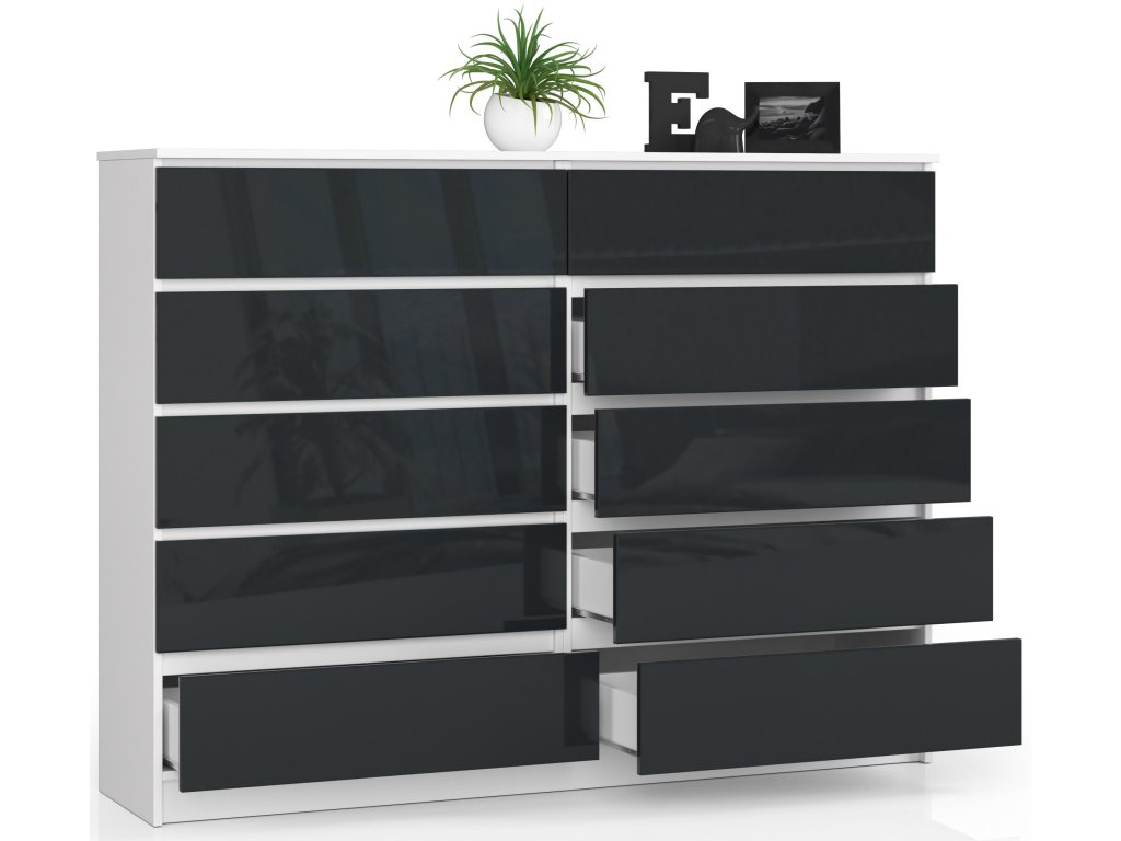 Moderní, široká a vysoká komoda, FREEZ160, bílá / grafitový lesk