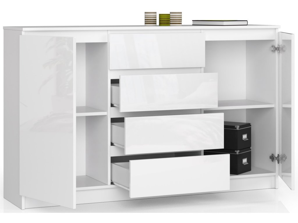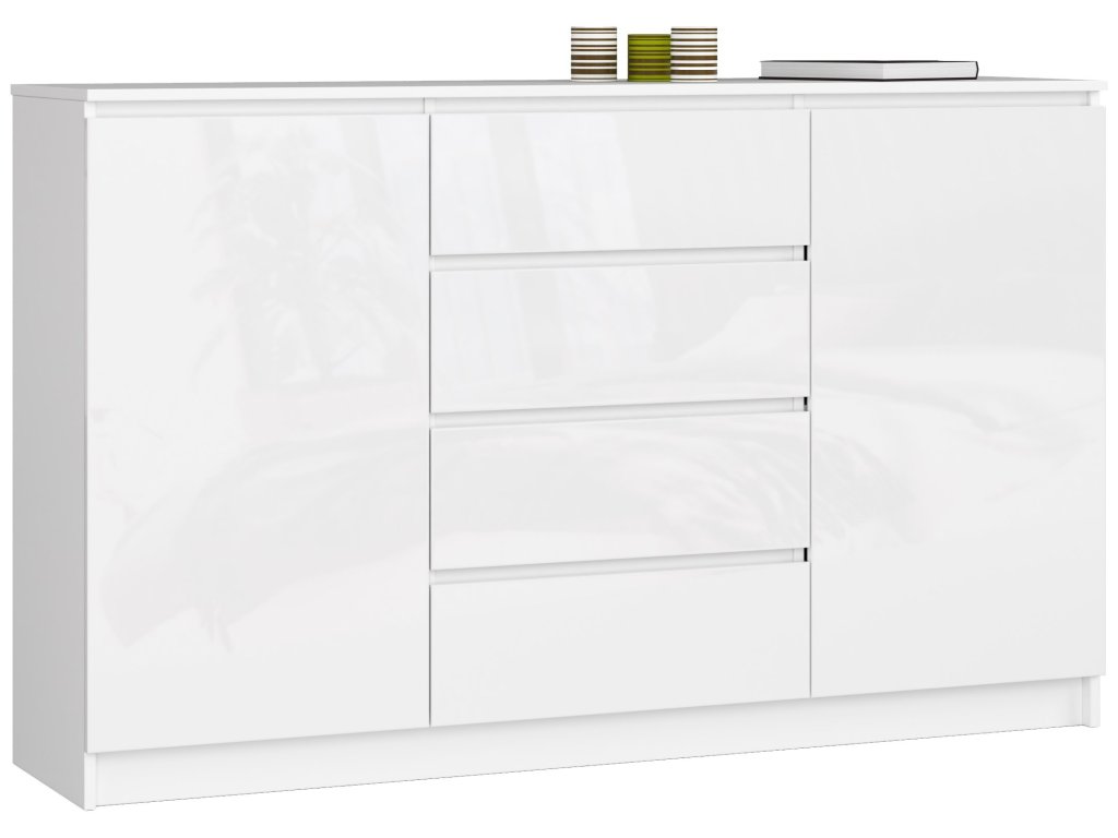 Moderní, široká a vysoká komoda, SOPHIA160, bílá / bílý lesk