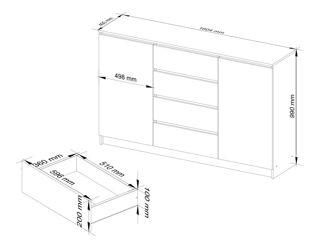 - Vybavení: 4 zásuvky a 2 plné dveře pro skříňku
