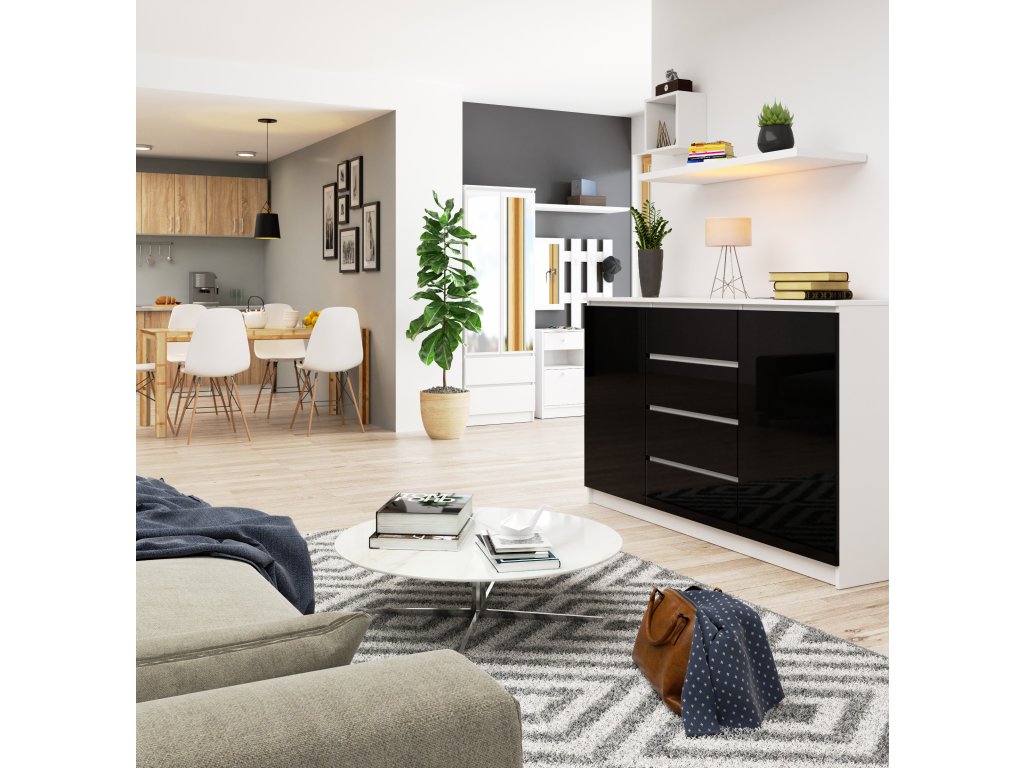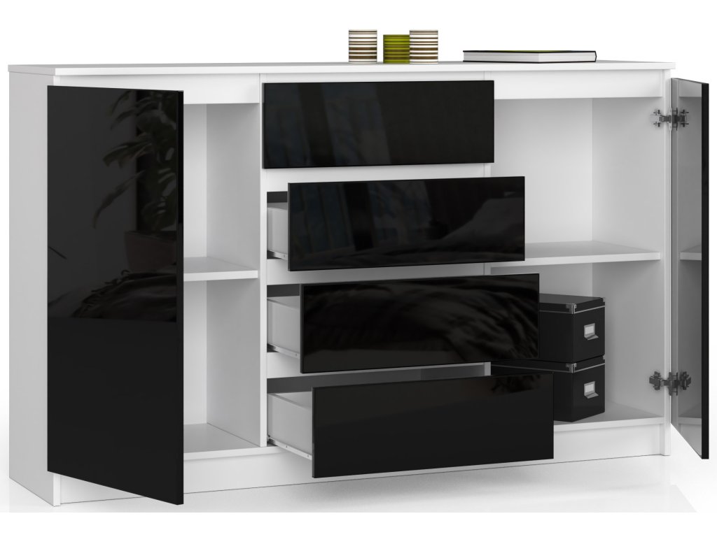 Komoda SOPHIA160: Stylová kombinace bílé a černého lesku
