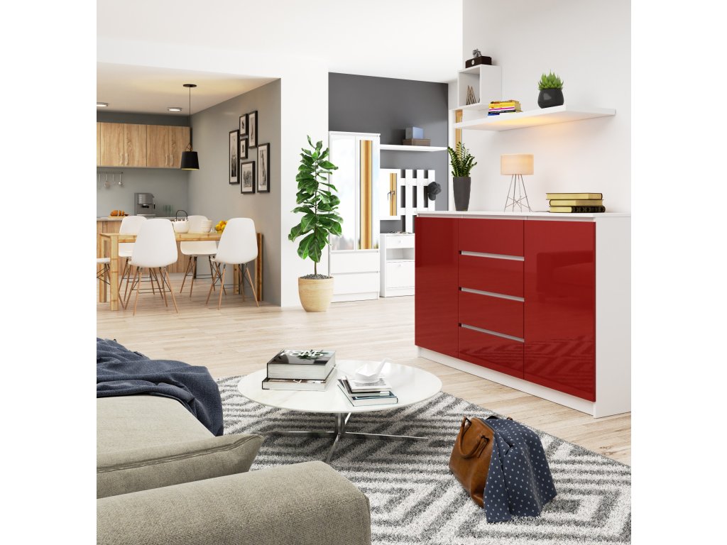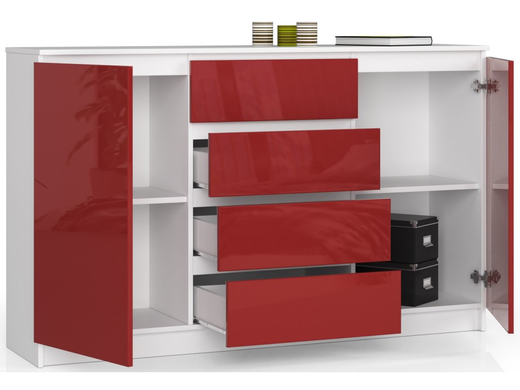 Komoda SOPHIA160: Elegance bílé spojená s červeným leskem