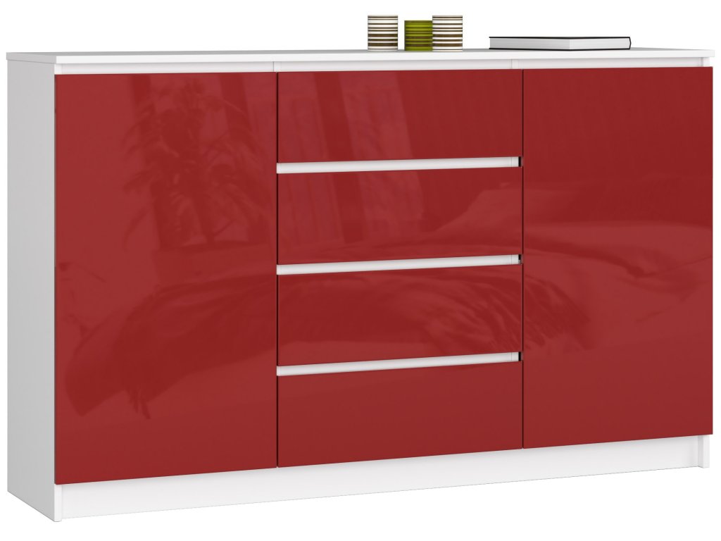 Moderní, široká a vysoká komoda, SOPHIA160, bílá / červený lesk