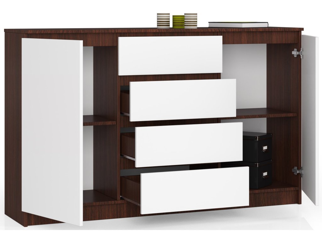 Moderní, široká a vysoká komoda, SOPHIA160, wenge / biela
