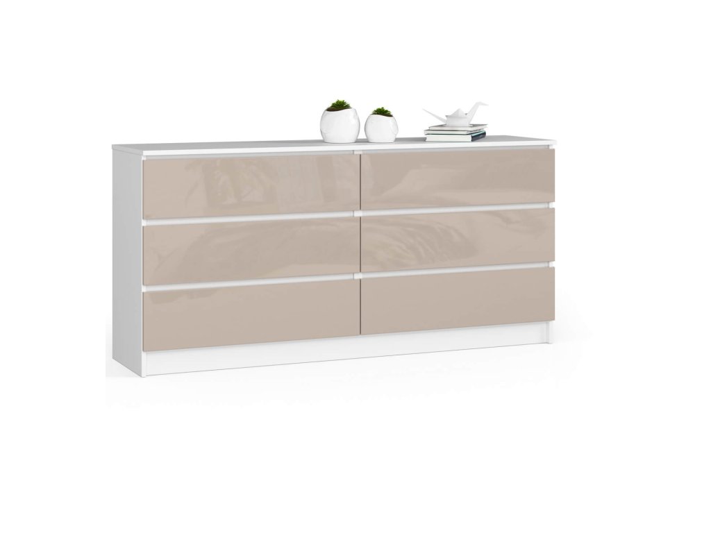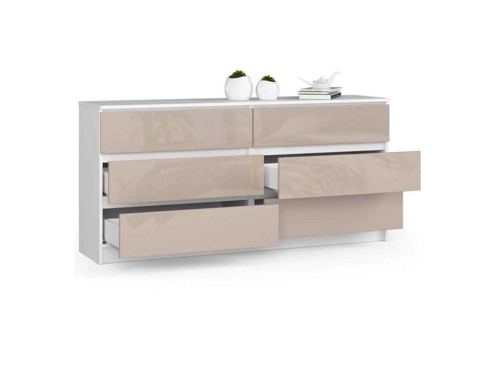 Moderní široká komoda, TOM160, bílá / capuccino lesk