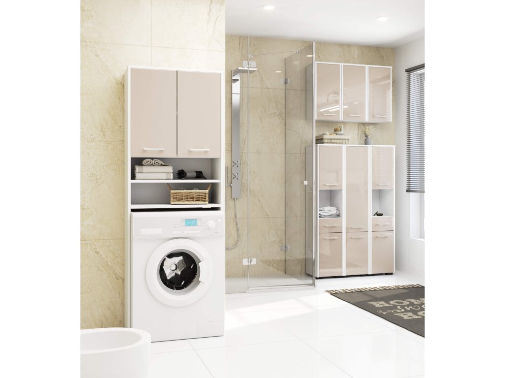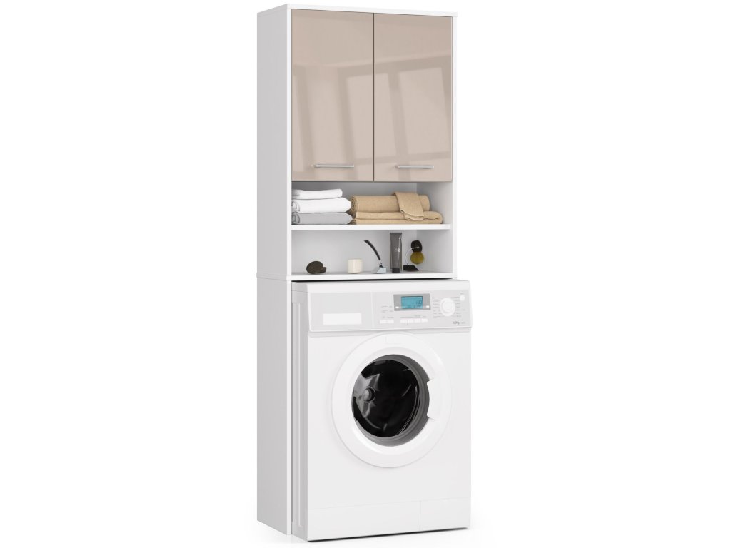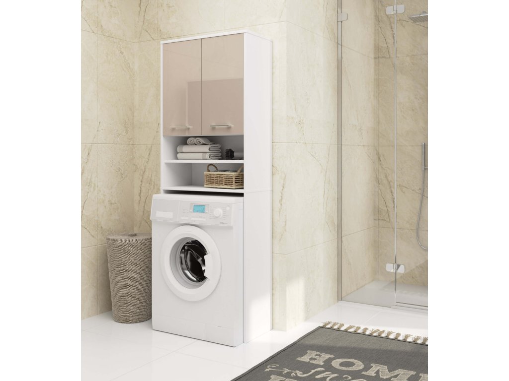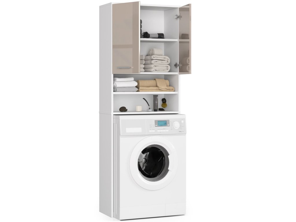 Moderní skříňka nad pračku AVERY, bílá / cappuccino lesk