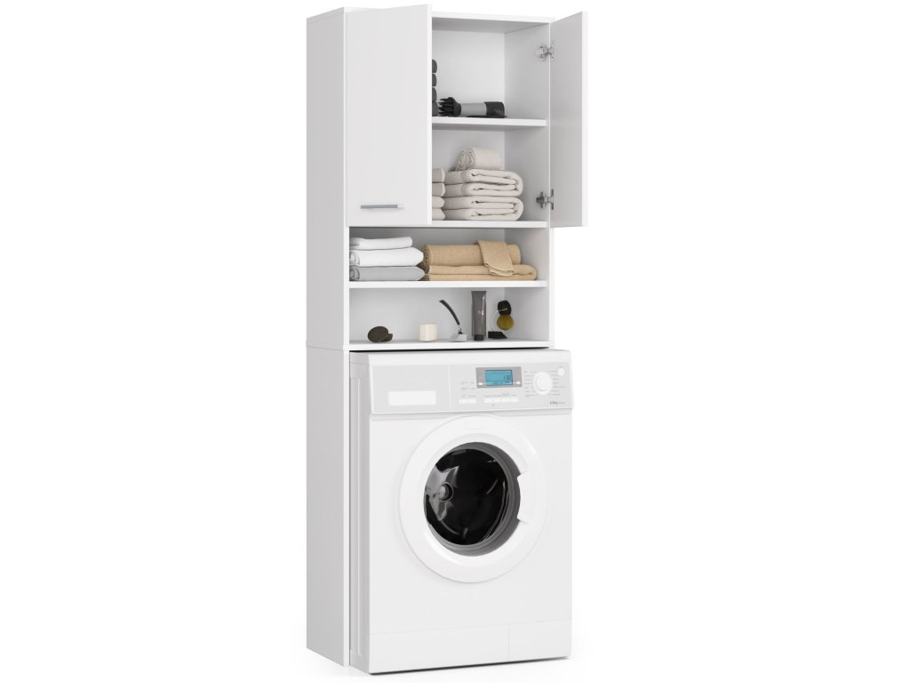 AVERY: Elegantní skříňka nad pračku v nezaměnitelném bílém provedení