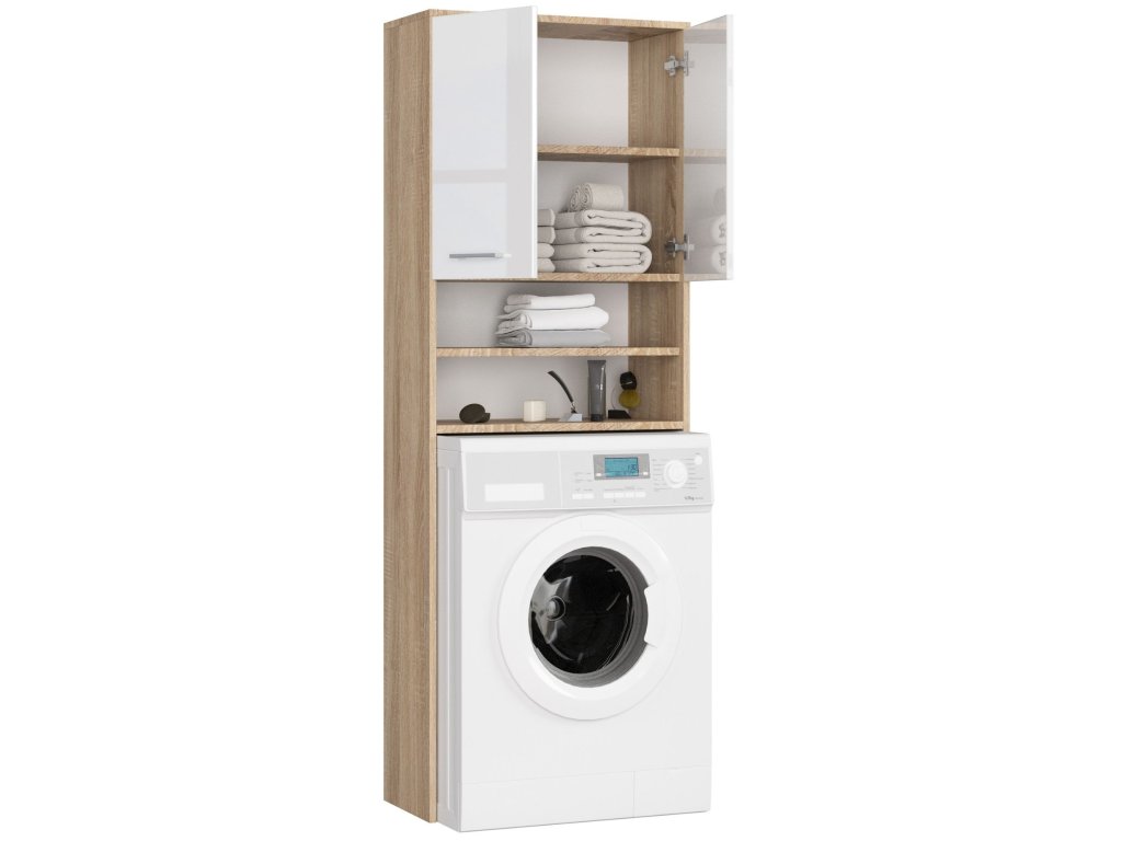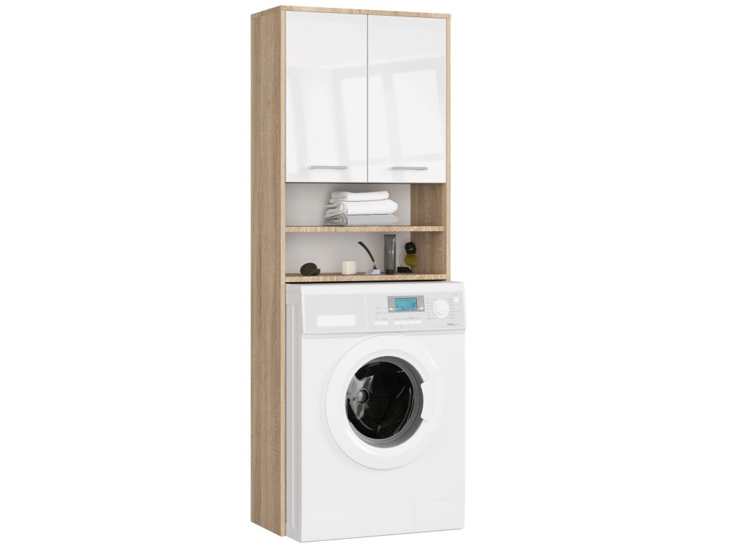 Moderní skříňka nad pračku AVERY, dub Sonoma / bílý lesk