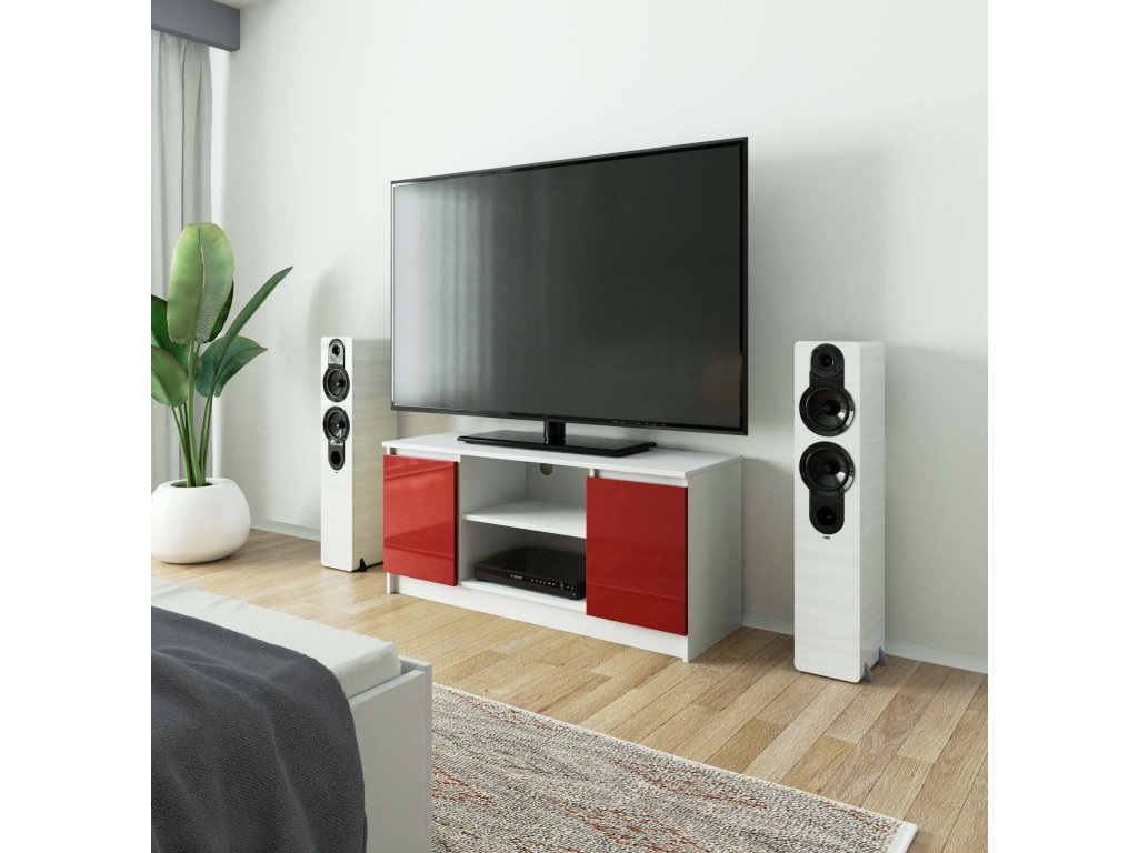Moderní TV stolek ROMANA120, bílý / červený lesk